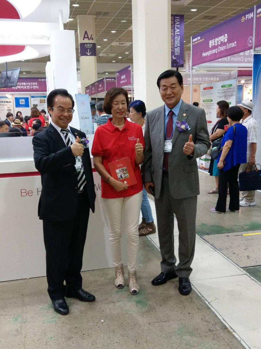 8月1日,開展第一天,王博士一大早就在韓國宋國柱總經理的陪同下來到Total Swiss關心許多展出細節,對於產品要如何正確沖泡,來凸顯產品的營養價值及口感風味,更有細膩的指導。