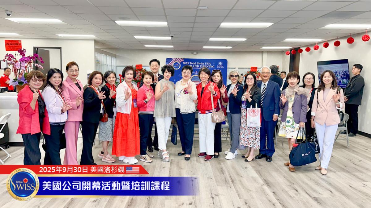 美西時間2025年9月30日上午11點,Total Swiss USA Grand Opening(Total Swiss 美國市場盛大開幕剪綵儀式)在加州核桃市山谷大道Total Swiss美國公司隆重舉行。除了百餘位來自台灣、韓國、馬來西亞的Total Swiss領導人,以及數十位美國當地夥伴與新成員之外,更邀請到蓋博谷商會CEO Mr. Aziz Amiri、核桃市前市長及眾議員候選人 Mr. Eric Ching、Diamond Bar市長 Dr. Chia Yu Teng 及其夫人 Teresa Lee、核桃市議員 Ms. Kay Lee Law 等當地政商名流共襄盛舉,一同見證這歷史性的一刻。