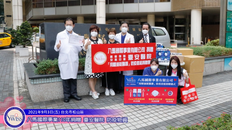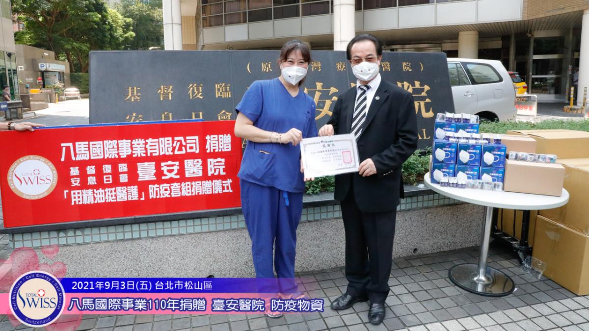 本次活動由八馬國際捐贈兩百瓶精油,兩百個香氛扣,2000個N95口罩給台安醫院。