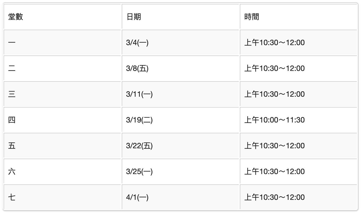 七堂義大利基礎語言課程表: 上課地點: