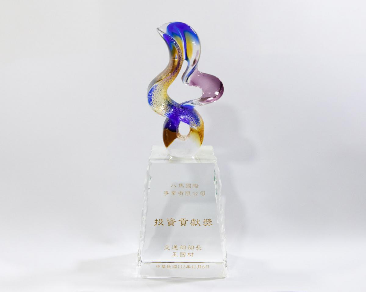 投資貢獻獎由交通部長王國材頒發給王博士,頒獎同時,主辦方介紹:「八馬國際事業以打造海、空、郵黃金三角、全力發展智慧物流海空港為理念,計畫將全球物流中心移回台灣落地台北港。八馬國際事業預計在台北港物流倉儲區投資11.5億元,充分發揮台北港自由港區的優勢,提升經營績效。」
