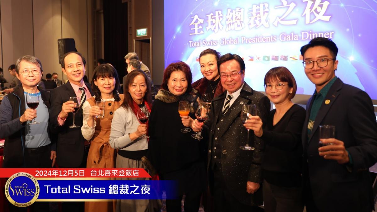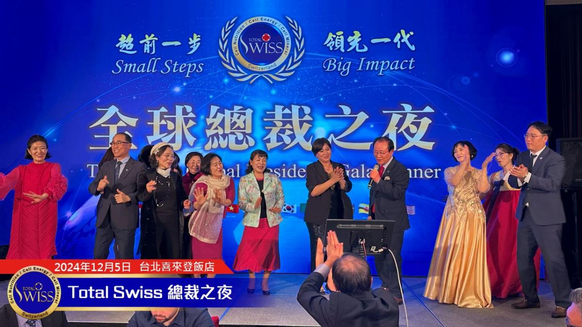 2024年的總裁之夜由張在心、王澤瑛兩位副總擔綱主持,兩人首先感謝王博士帶領Total Swiss走過「傳傳同步、藍海領航」的2024年,並引導全場總裁一起高呼2025年的目標:「超前一步,領先一代,Small Steps, Big Impact」