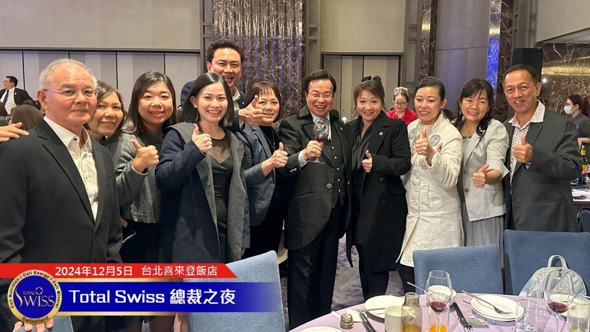 晚宴即將進入尾聲的時候,王博士十分肯定2024年總裁之夜全球一家的氣氛,他說:「Total Swiss 是一家人,We are family! 我們要一起成功,不分彼此。不管是哪個組織,我們都要互相幫助、互相扶持,讓我們的明天變得更好。」