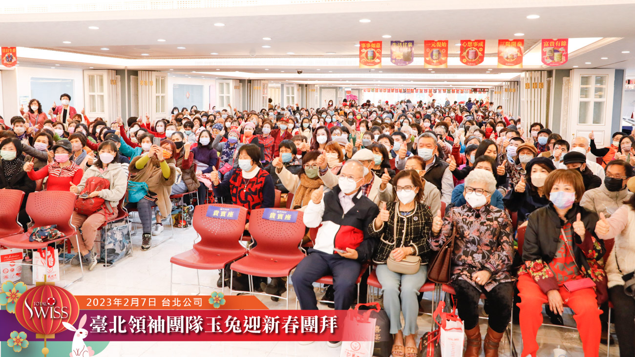 Total Swiss玉兔迎春台北團拜 八百夥伴洋溢信心,王博士祝福夥伴一飛沖天