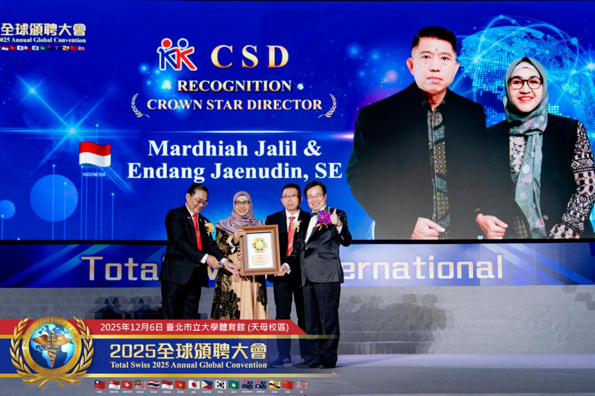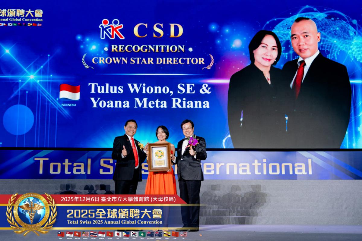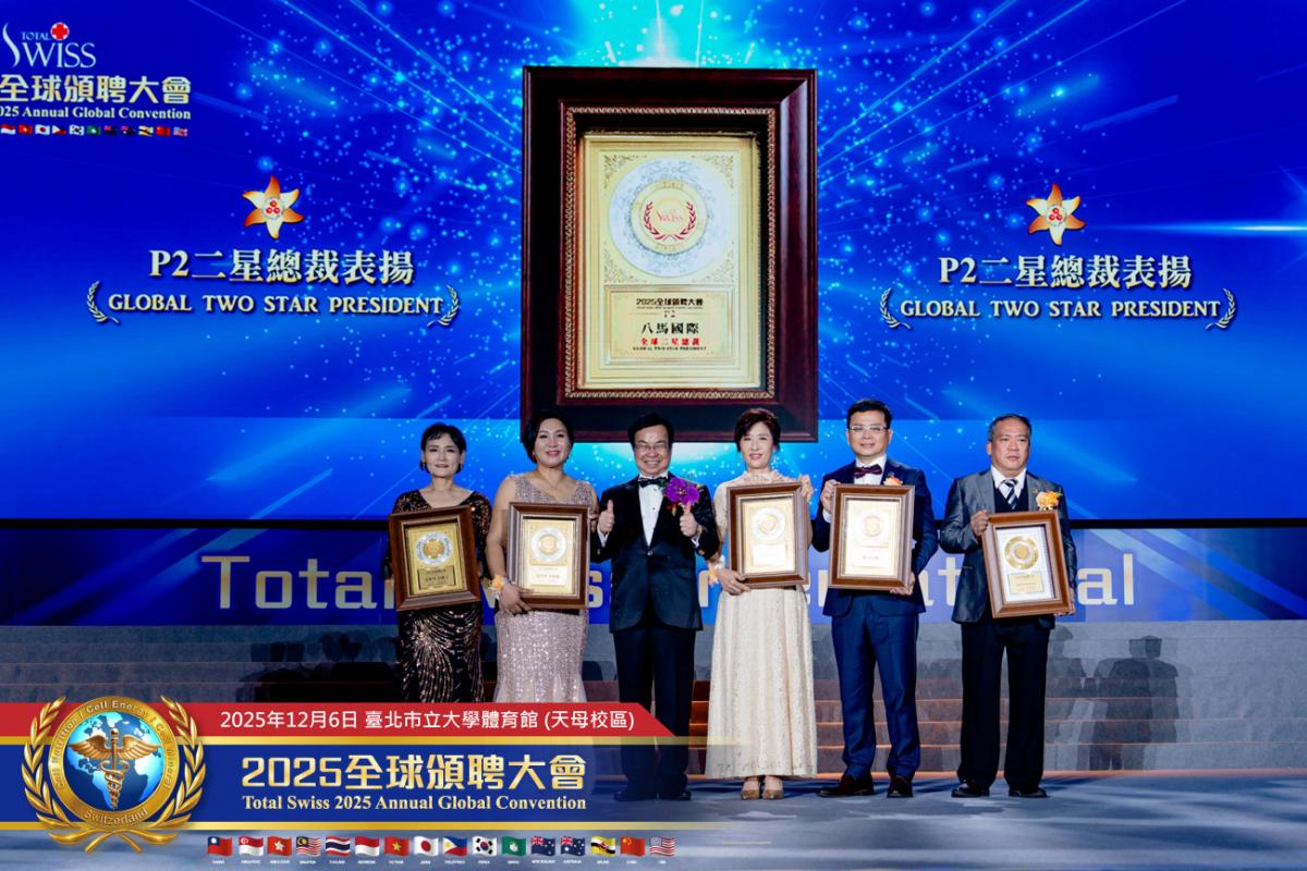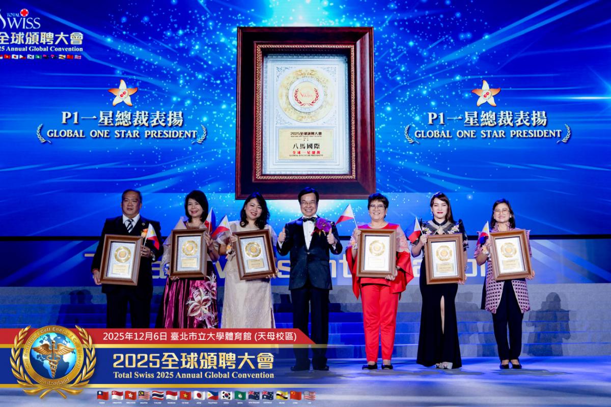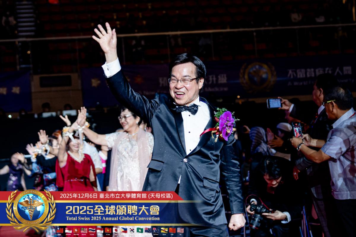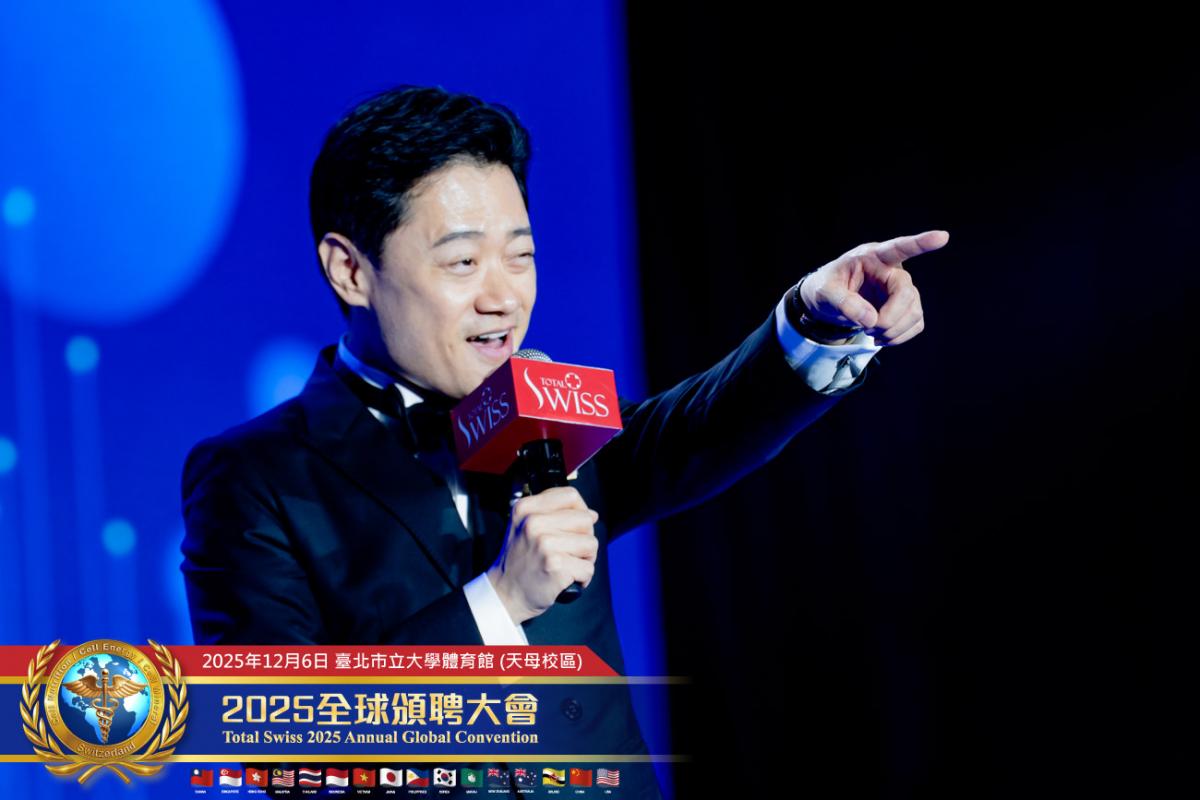 四個階段的大進場完成合影之後,台北市立大學18位武藝精湛的同學,用融合舞蹈與武術的力與美,為大會進行開場表演。在開場表演贏得滿堂喝采之後,十位帥哥美女主持人吳玫儒皇冠、邱瑞靜皇冠、Corrinne總裁、余弘毅總裁、凌偉峻總裁、韓國翻譯佳佳、日本翻譯山下、越南翻譯玄玄、印尼翻譯妮妮以及泰國翻譯Lily,共同揭示2025年Total Swiss全球頒聘大會充滿使命與熱情的主題:「預防醫學大升級,不留貧病在人間。A New Era of Preventive Medicine. A World Free from Poverty and Sickness.」