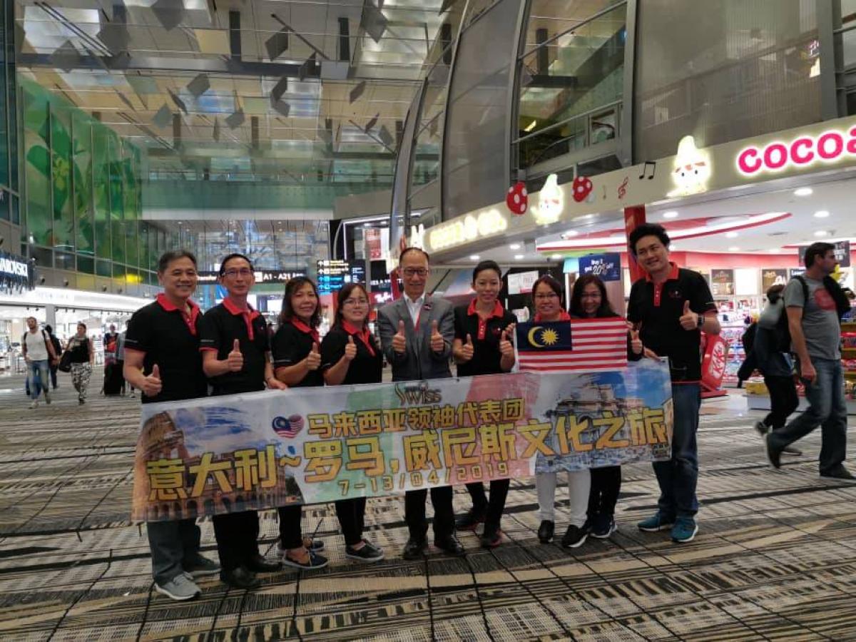 4月7日晚上10點,Ivy副總在桃園機場第一航廈向大家發佈了羅馬之旅的第一則消息: 羅馬之旅A團已經在華航一航廈集合,香港團隊也已經出發前往台灣,馬來西亞的總裁們也已經抵達新加坡機場,台灣的總裁們並在機場與王博士一起合影。然後,搭上班機飛往羅馬。