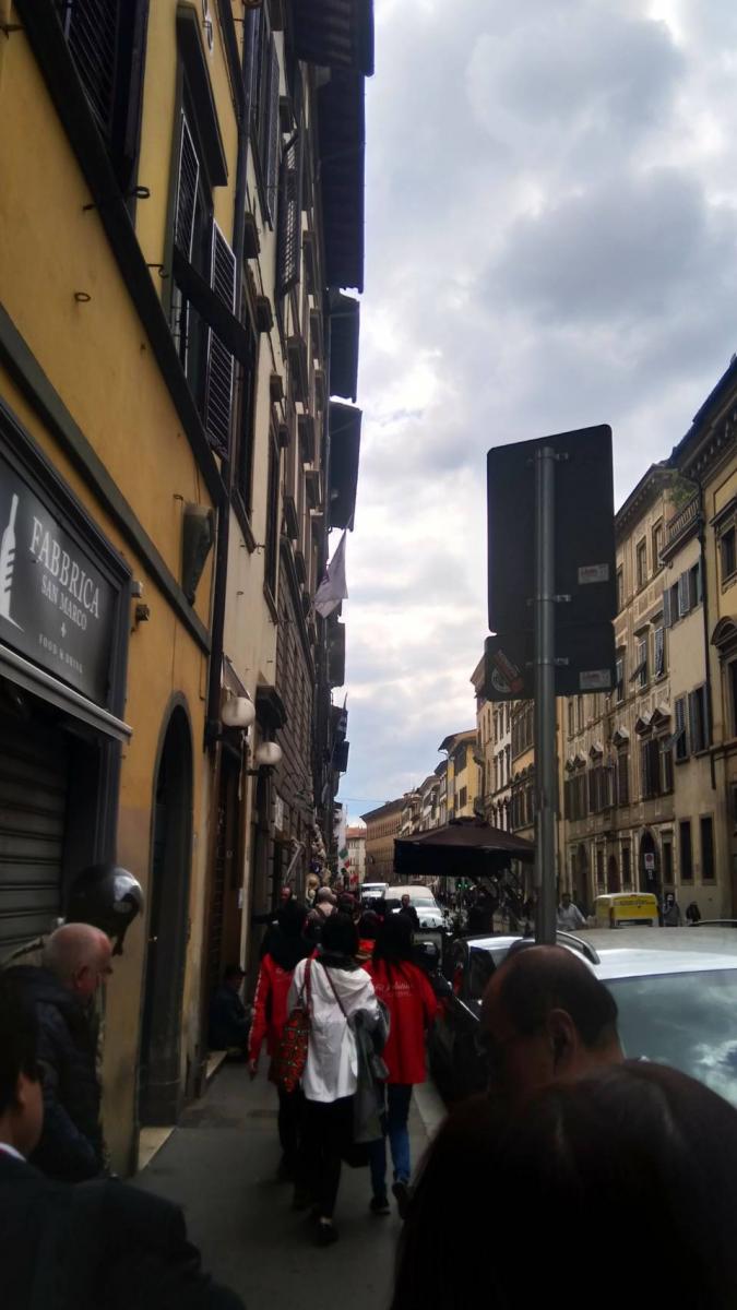 經過漫長的飛行,羅馬之旅A團於義大利時間四月八日上午七點抵達羅馬達文西機場(註一),在與稍後抵達的馬來西亞夥伴會合後,A團夥伴於上午九點左右出關,登上前往佛羅倫斯的巴士。 一上車,王博士便帶給夥伴們第一個驚喜,全義大利最有名的AMEDEI巧克力。我們品嘗著香醇濃郁的巧克力,前往美麗的佛羅倫斯(註二)。