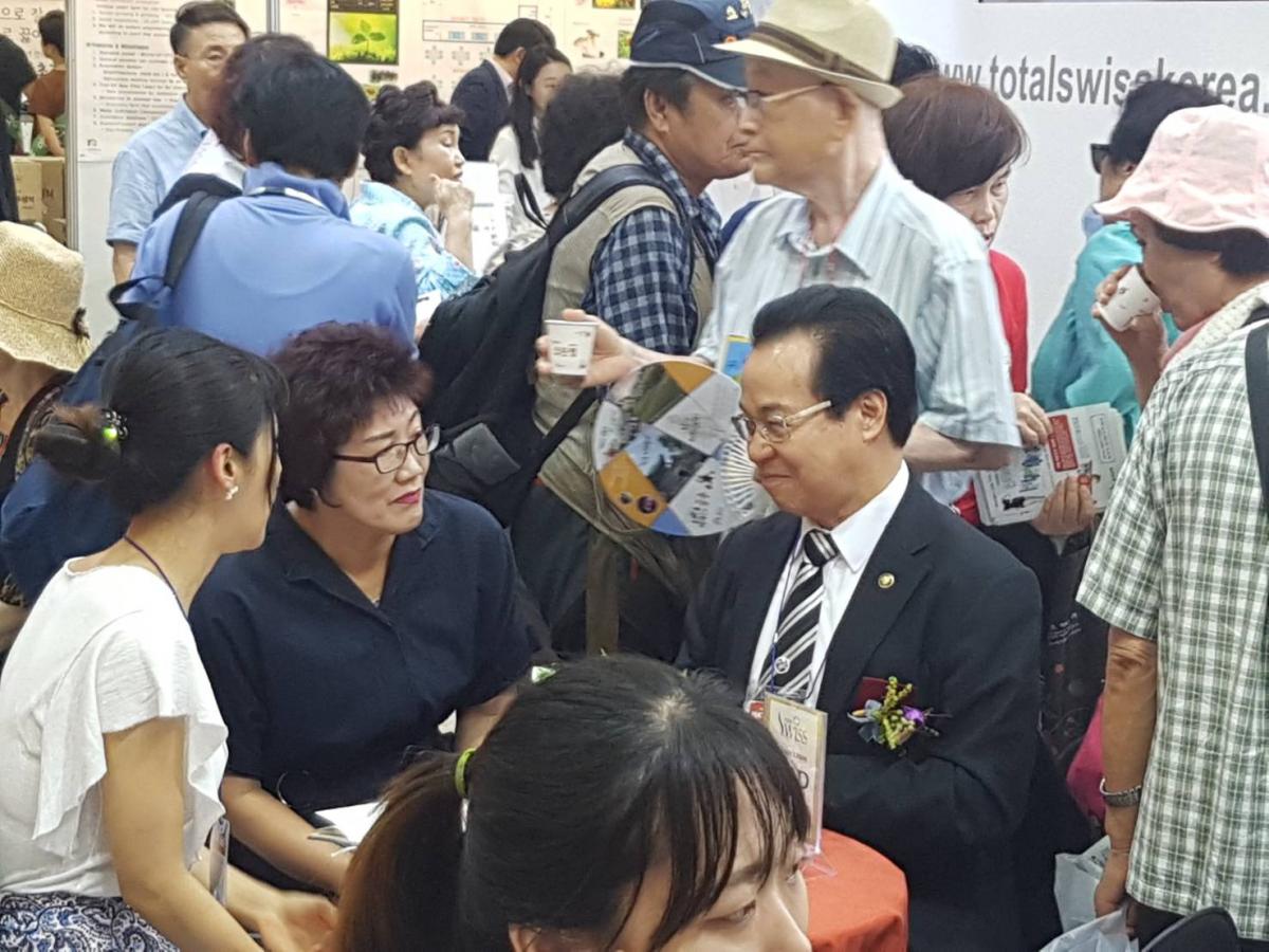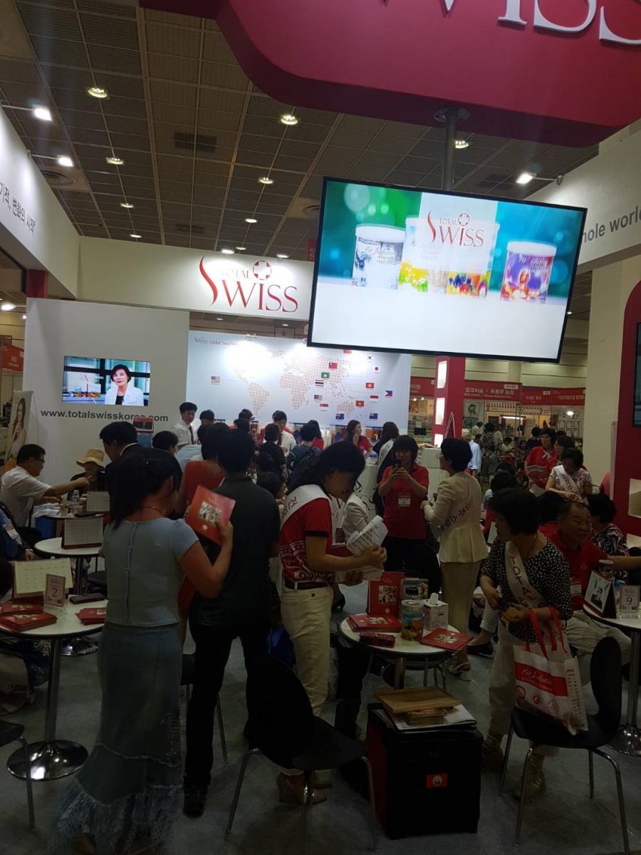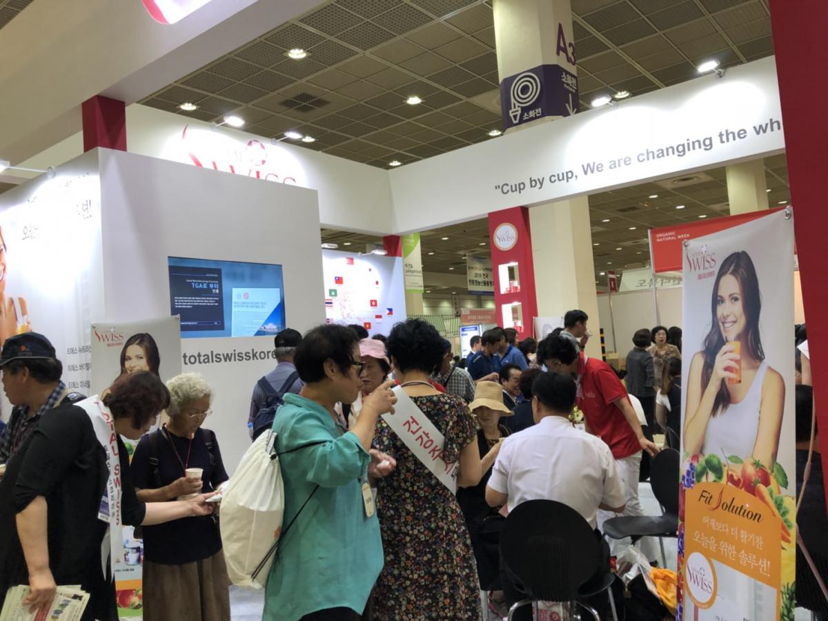2018年8月16日(週四),韓國COEX展覽會隆重登場,Total Swiss韓國公司的展覽攤位一早就擠進滿場的人潮;Total Swiss創辦人王文欽博士及韓國總經理宋國柱也從一開展就親自坐鎮現場,跟夥伴及來訪的貴賓洽談。