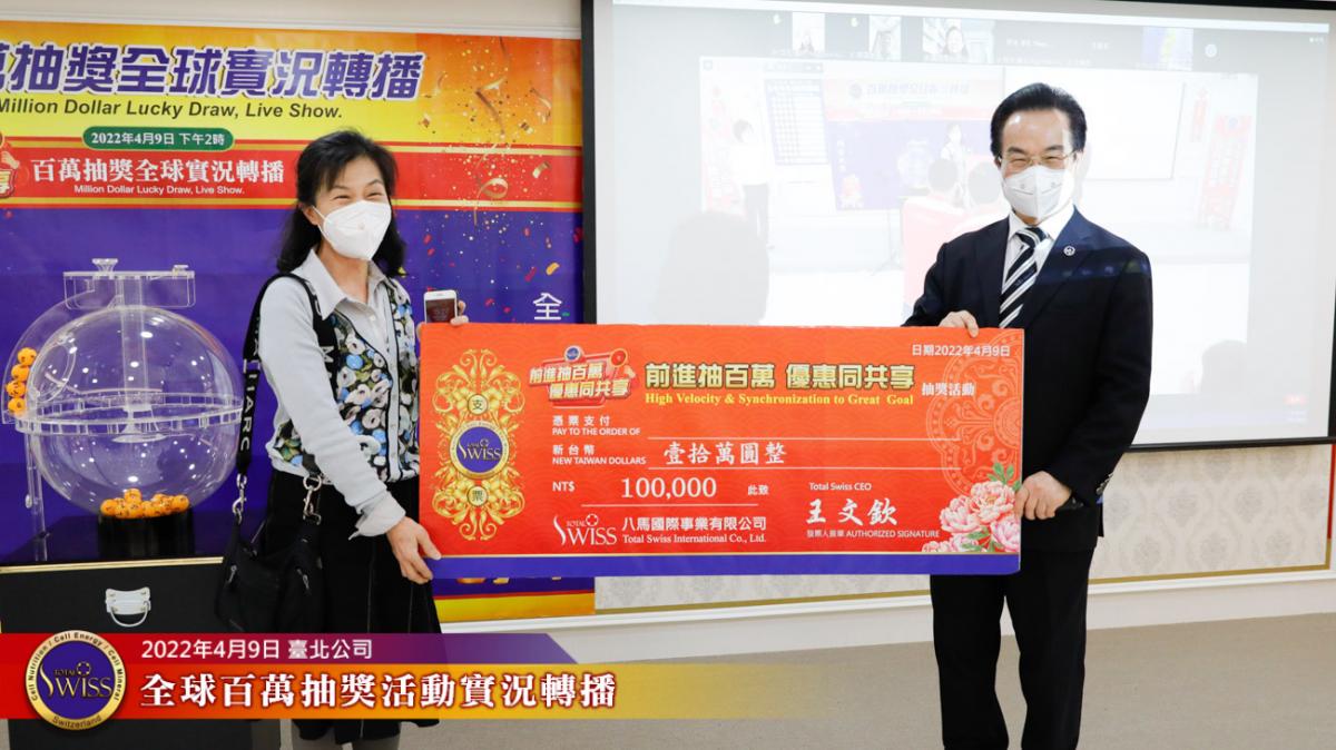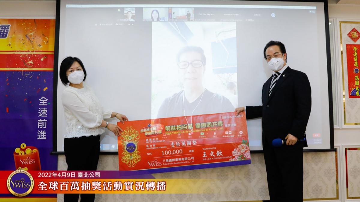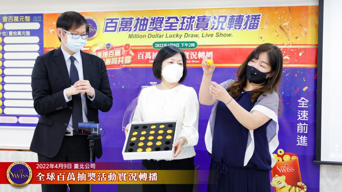 Total Swiss第四次百萬抽獎全球實況轉播在台北公司七樓進行,前面三次百萬大獎,分別由台灣、韓國、新加坡三個市場的夥伴獲得,這種大獎從天而降的趣味,已經在夥伴之間掀起了熱烈的話題。