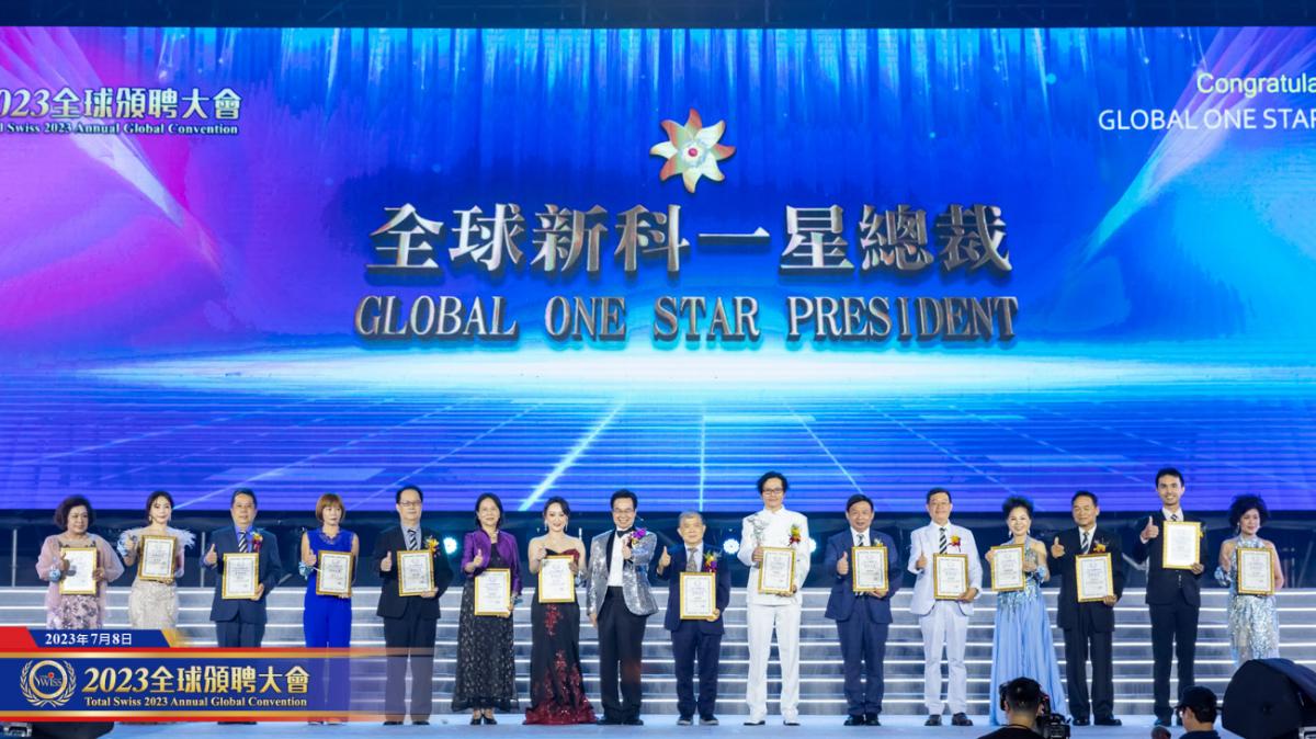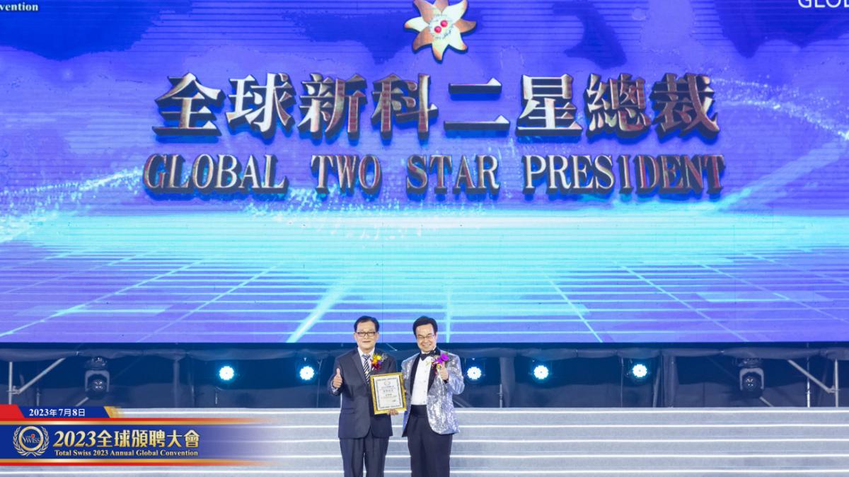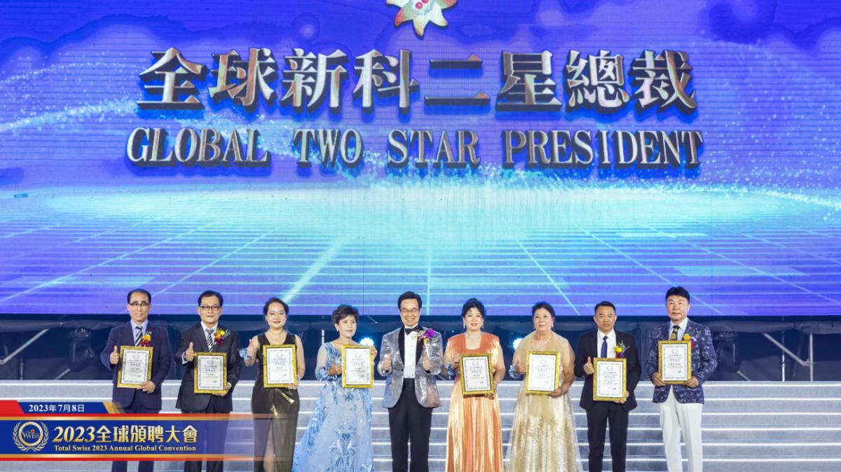 在德寧總裁優美的樂聲餘韻中,接下來進行全球二星總裁的頒聘表揚,二星總裁受聘後,由王博士隨機點名請他們分享上聘感言。
