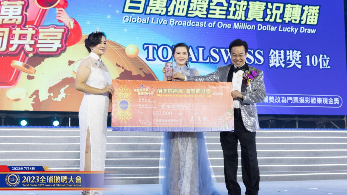 很奇妙的是,陳丹麗的媽媽陳金鳳二星總裁、妹妹陳丹霞二星總裁、弟弟陳東瑋二星總裁都在頒聘會場,但是一百萬卻是被人在香港的陳丹麗獲得。而這個插曲,也再一次說了Total Swiss是一個擁有許多總裁家庭的獨特企業平台。