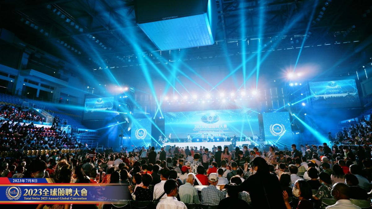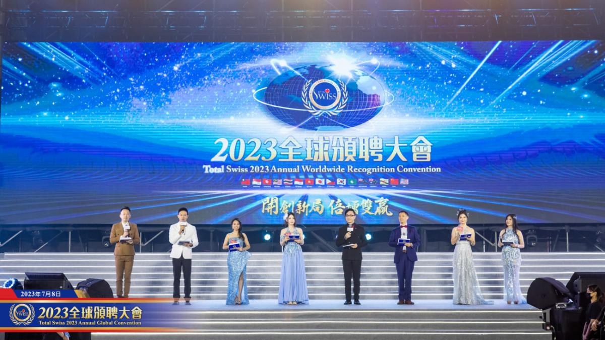 7月8日下午1點鐘,Total Swiss 2023年全球頒聘大會在台北市和平籃球館盛大舉行,這是自2019年以來,被疫情阻隔了三年之後,來自全球16個國家的夥伴第一次齊聚一堂的盛會。