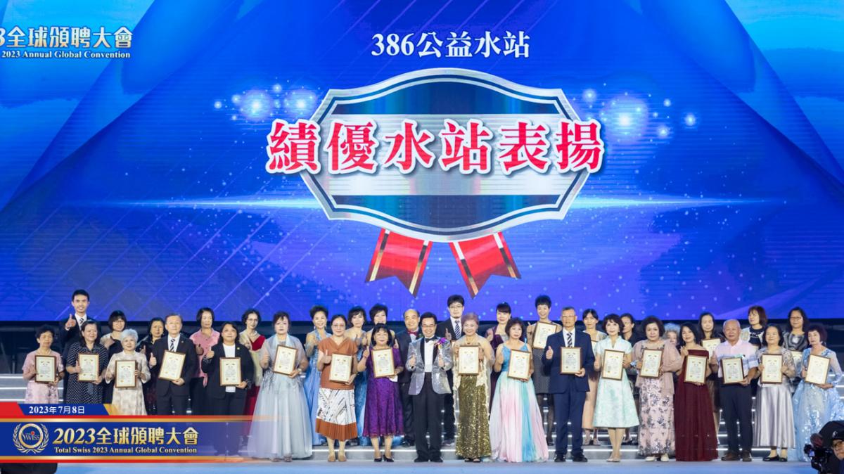 在公益影片與水站影片的鋪陳之後,首先頒發的,是386績優水站獎狀,用以表彰26位用熱忱深耕社區、用好水服務民眾的優秀站長。