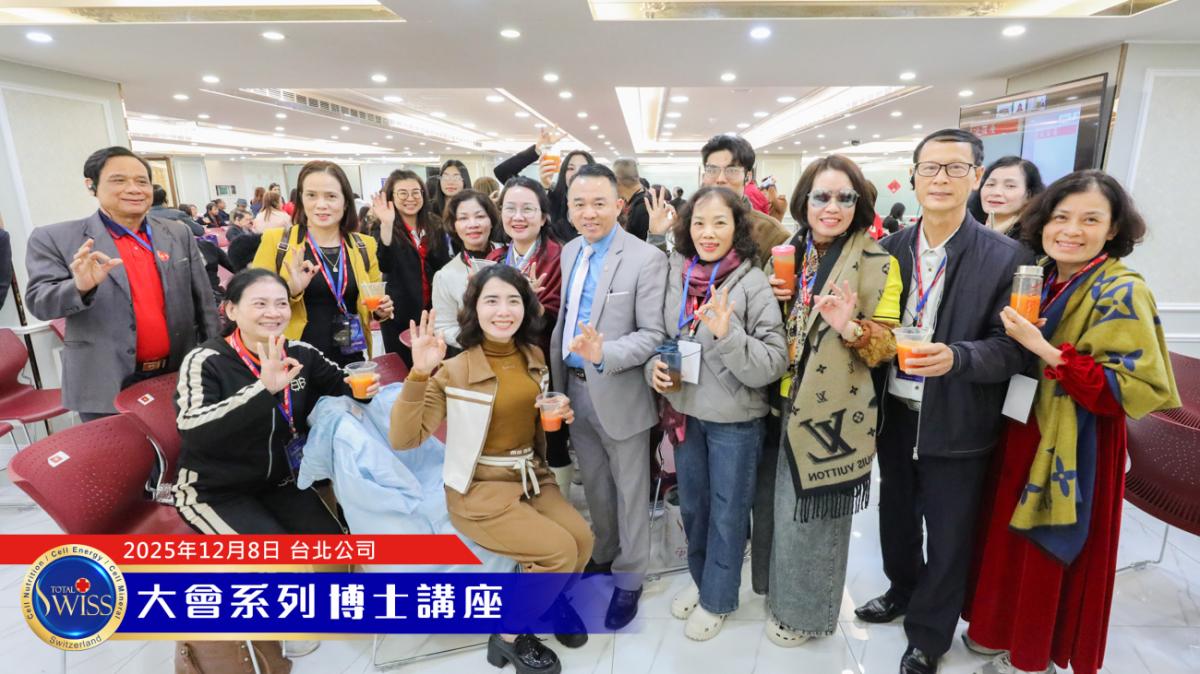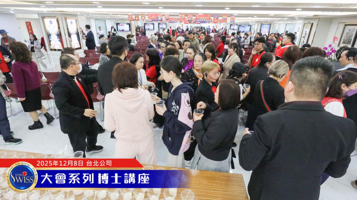 2025年12月8日,Total Swiss全球班聘系列活動最後一天,培訓課程的壓軸內容,由王博士親自上場,扮演Total Swiss醫療集團大轉型的擘畫師,並向全球夥伴展現出於2026年及以後Total Swiss遼闊而清晰的藍圖。有全球市場耕耘計畫,有藥局強化更新計畫,有線上行銷計畫,有台北港三萬坪基地建設計畫,每走一步,都是Total Swiss的大躍進,也是健康產業的新篇章。