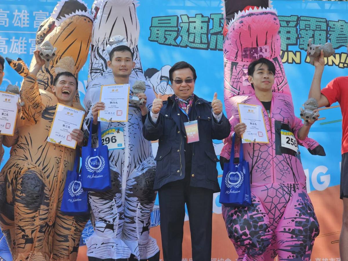 籌畫並操盤本次活動的高雄運動發展局對於Total Swiss長期支持運動員的行動已有深入了解,為了表達對王博士取之社會用之社會理念與贊助高雄馬拉松的肯定,運發局局長侯尊堯特別頒發感謝狀給王博士,用大拇指向王博士表達肯定與謝意。