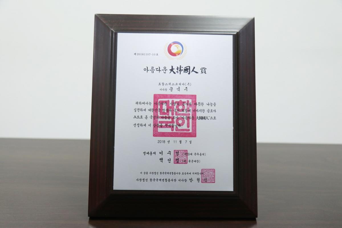 「2018大韓民國公益大賞」在韓國首爾KBS電視台舉行,在這一場隆重的公益大賞活動中,一共產生了64位公益大賞得主,並再從其中遴選出12個「美麗的大韓國人賞」。