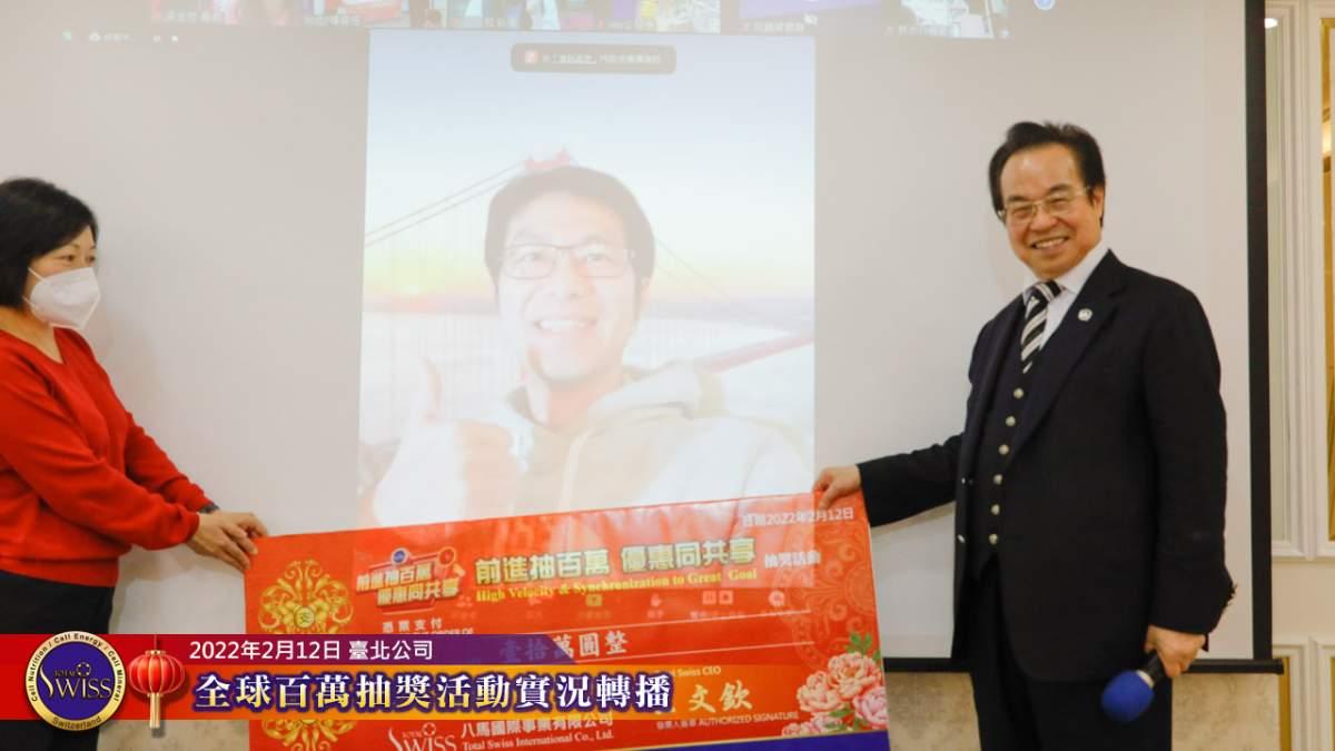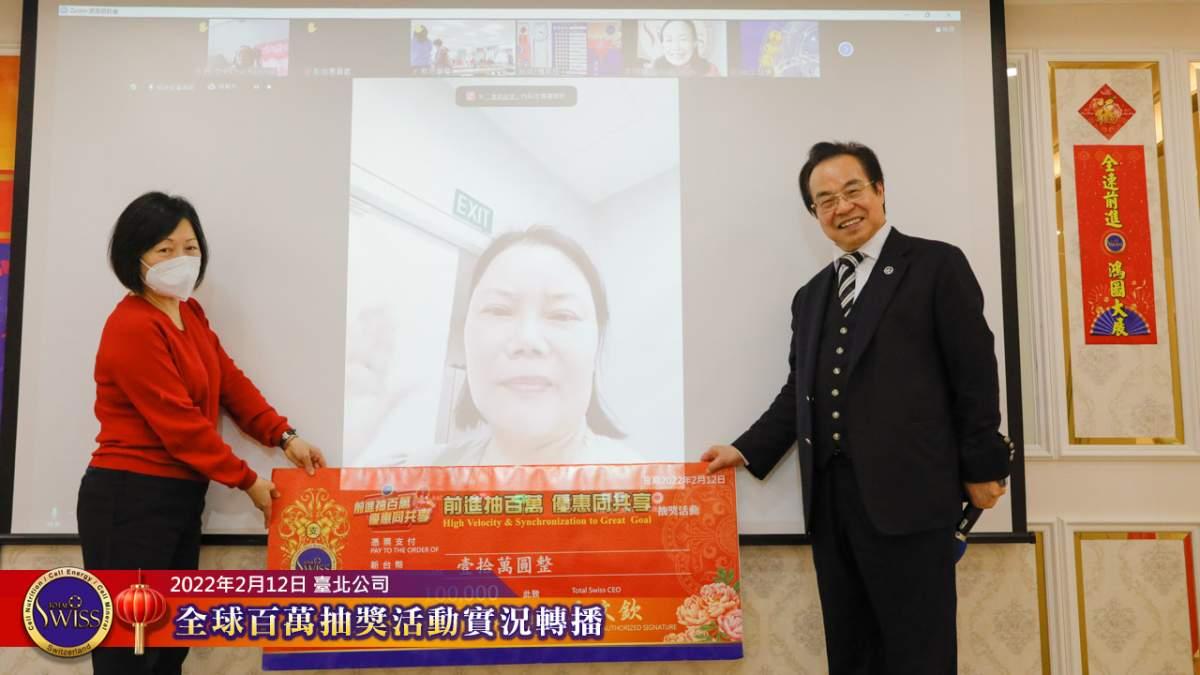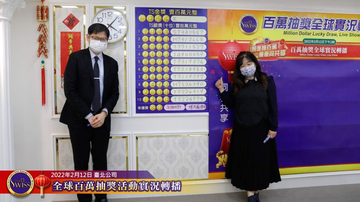 2月12日下午,百萬大抽獎活動於Total Swiss台北公司七樓舉行,除了到場的北部夥伴情緒緊張、心跳加速之外,透過視訊系統參加活動的全球夥伴也十分踴躍,每個人都希望一百萬元的大獎能夠落到自己的頭上。