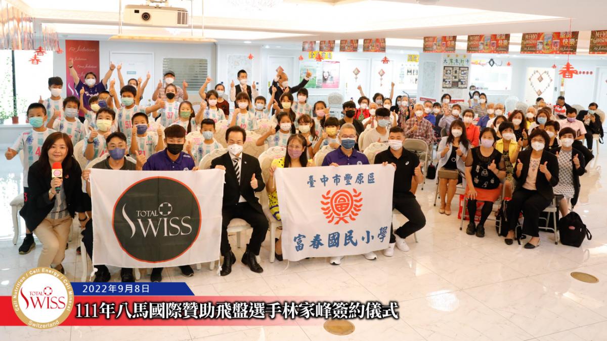 9月8日,台中市政府推手獎頒獎典禮於下午3點鐘結束後,下午4點鐘,Total Swiss台中公司繼續舉辦一場富春國小飛盤隊教練林家峰簽約贊助儀式。
