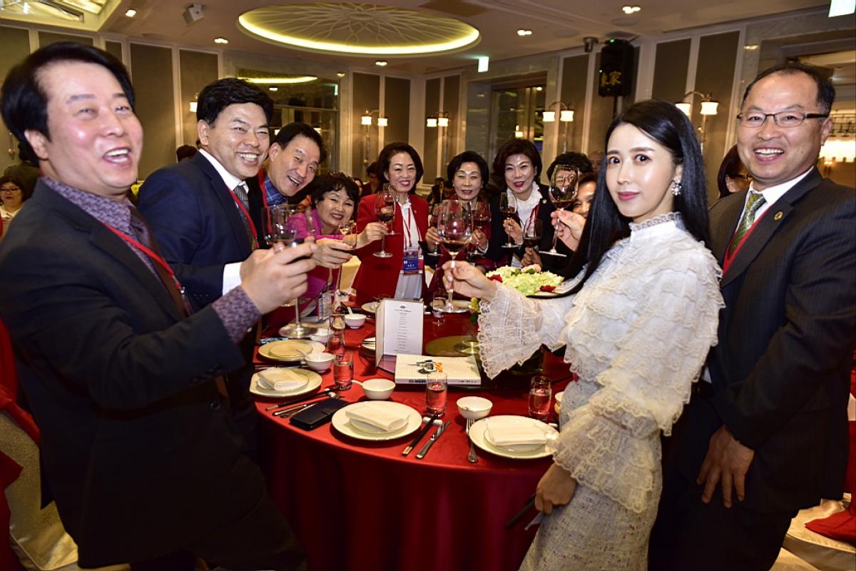 12月10日傍晚,參加全球總裁會議之後,總裁們分成七部大巴前往敦化北路東方文華酒店參加總裁之夜。