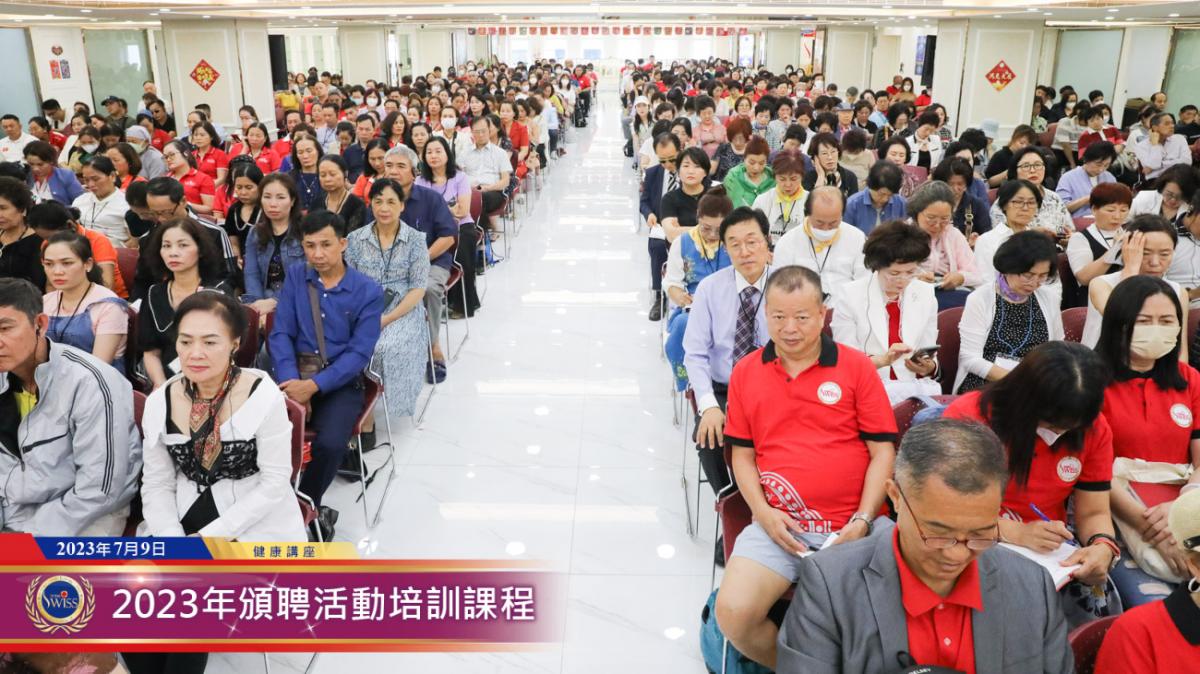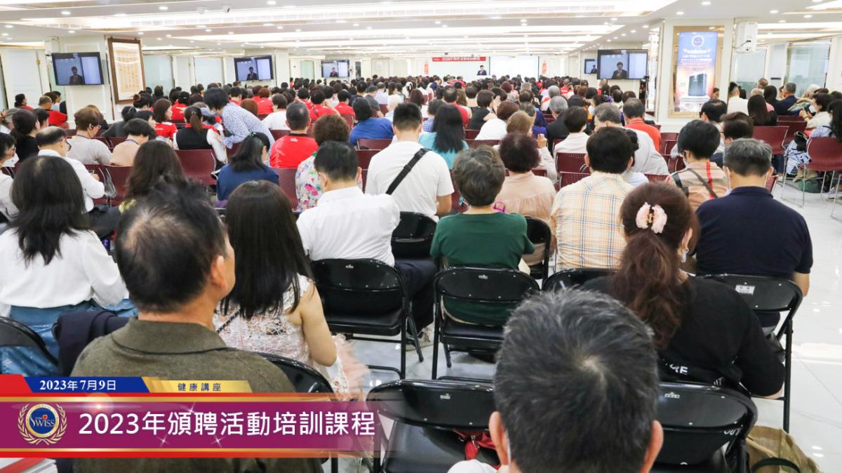 2023年7月9日下午,來自台灣、香港、新加坡、韓國、日本、越南、泰國、馬來西亞等十六個國家符合資格的事業夥伴,齊聚在Total Swiss台北公司七樓、四樓、二樓等大教室。這是自2020年疫情以來最盛大的一場健康講座,面對數以千計難得來到台北公司的海外夥伴,王博士也是傾囊相授,希望讓所有夥伴自己看聽懂健康、得到健康,還能夠幫助更多的人健康。