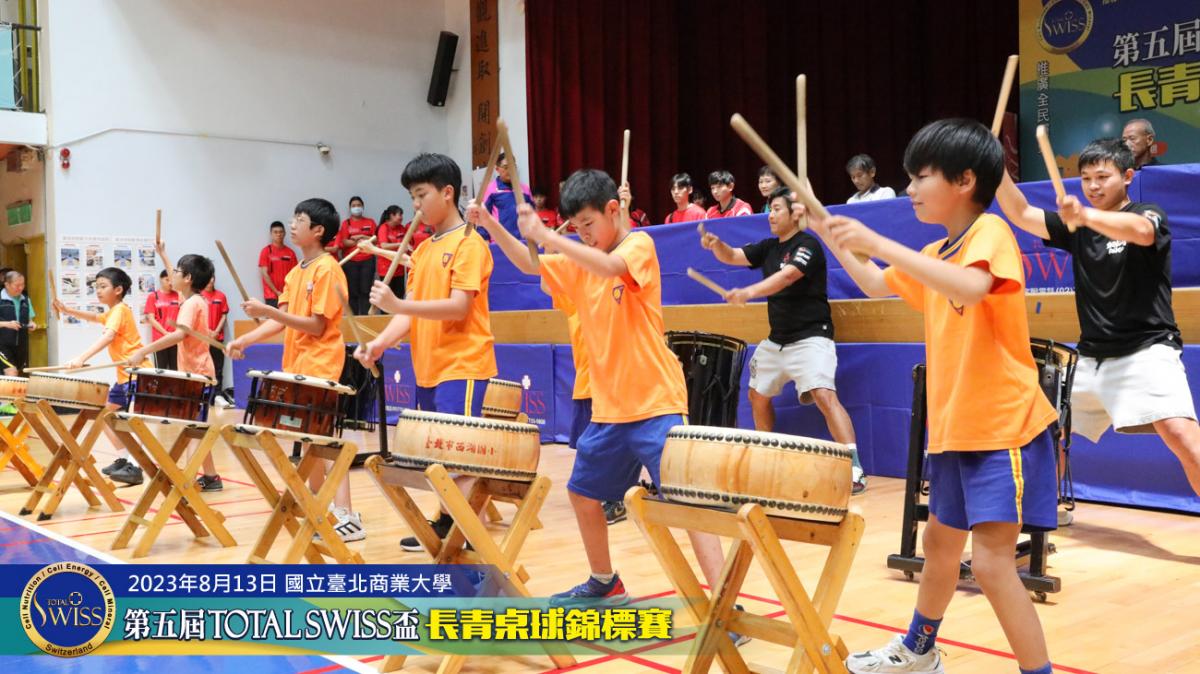上午11點整,先是一場由台北市西湖國小太鼓隊十位太鼓師生(學生皆為資源班學童)精彩的演出,用震撼的鼓聲把現場氣氛帶到最高點,接著由大會主席王文欽博士發表開幕致詞,闡明舉辦Total Swiss盃長青桌球錦標賽的精神。