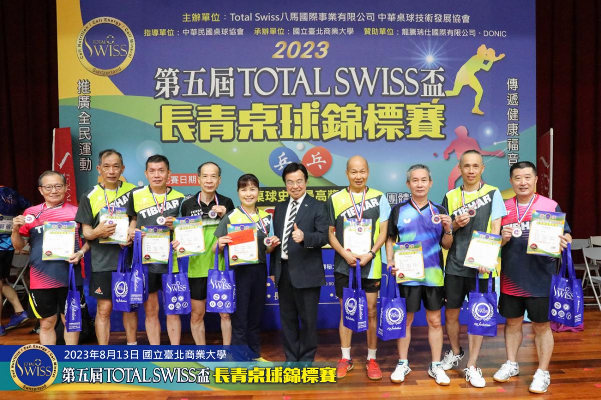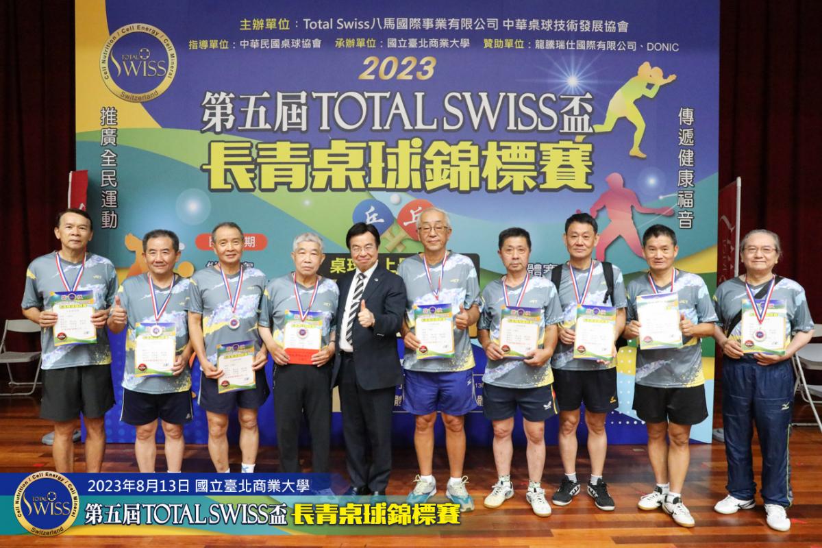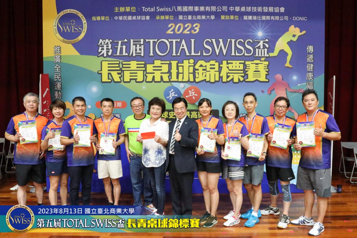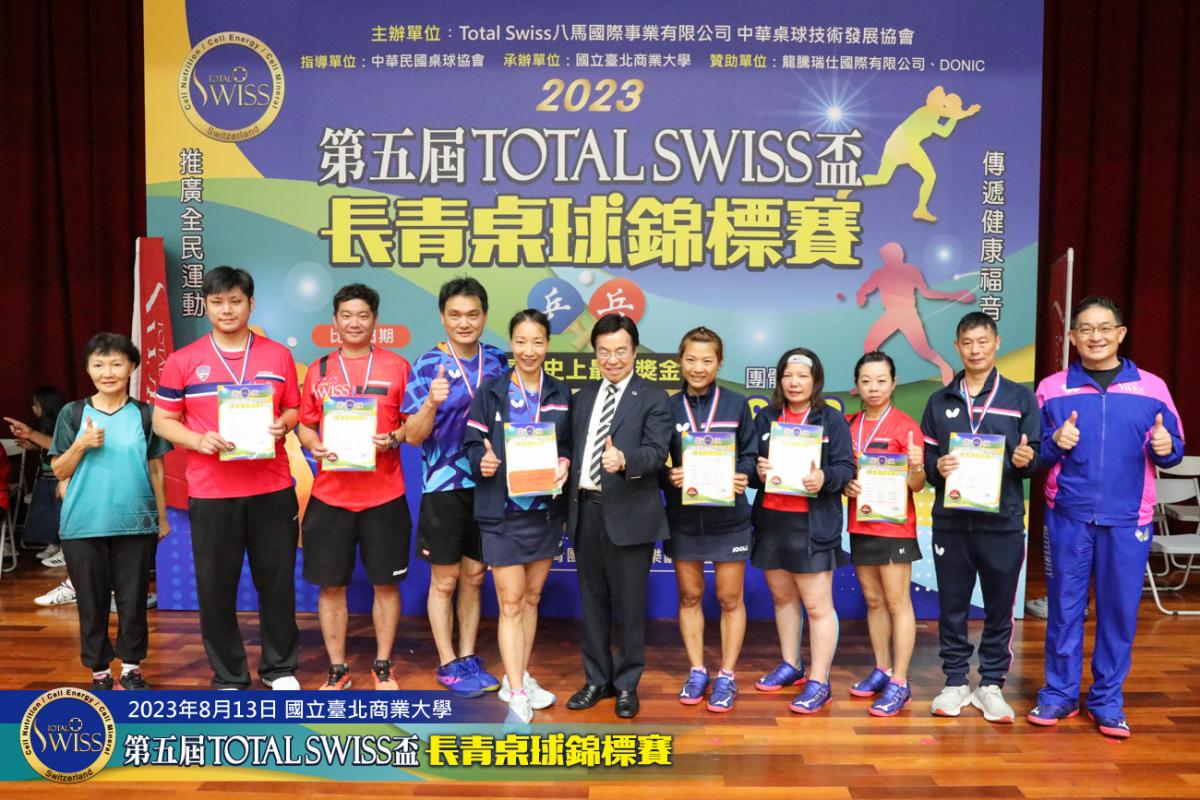 8月13日,「2023第五屆Total Swiss盃長青桌球錦標賽」進入第二天團體賽賽程,為了20萬元冠軍獎金,上午9點一開打,每一支參賽隊伍莫不使出渾身解數,希望能一路開掛、過關斬將,最終能贏得冠軍大獎。