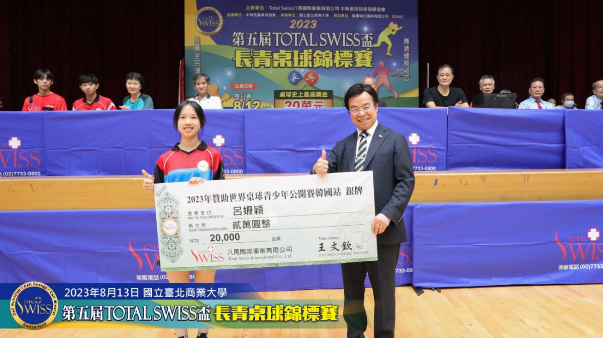 在開幕活動中,王博士還特別頒發獎助金給早前在捷克WTT贏得男女混雙冠軍的許宸逢、劉羽英每人三萬元,以及在韓國WTT拿到亞軍的呂姍穎兩萬元,以嘉勉他們的績優表現。