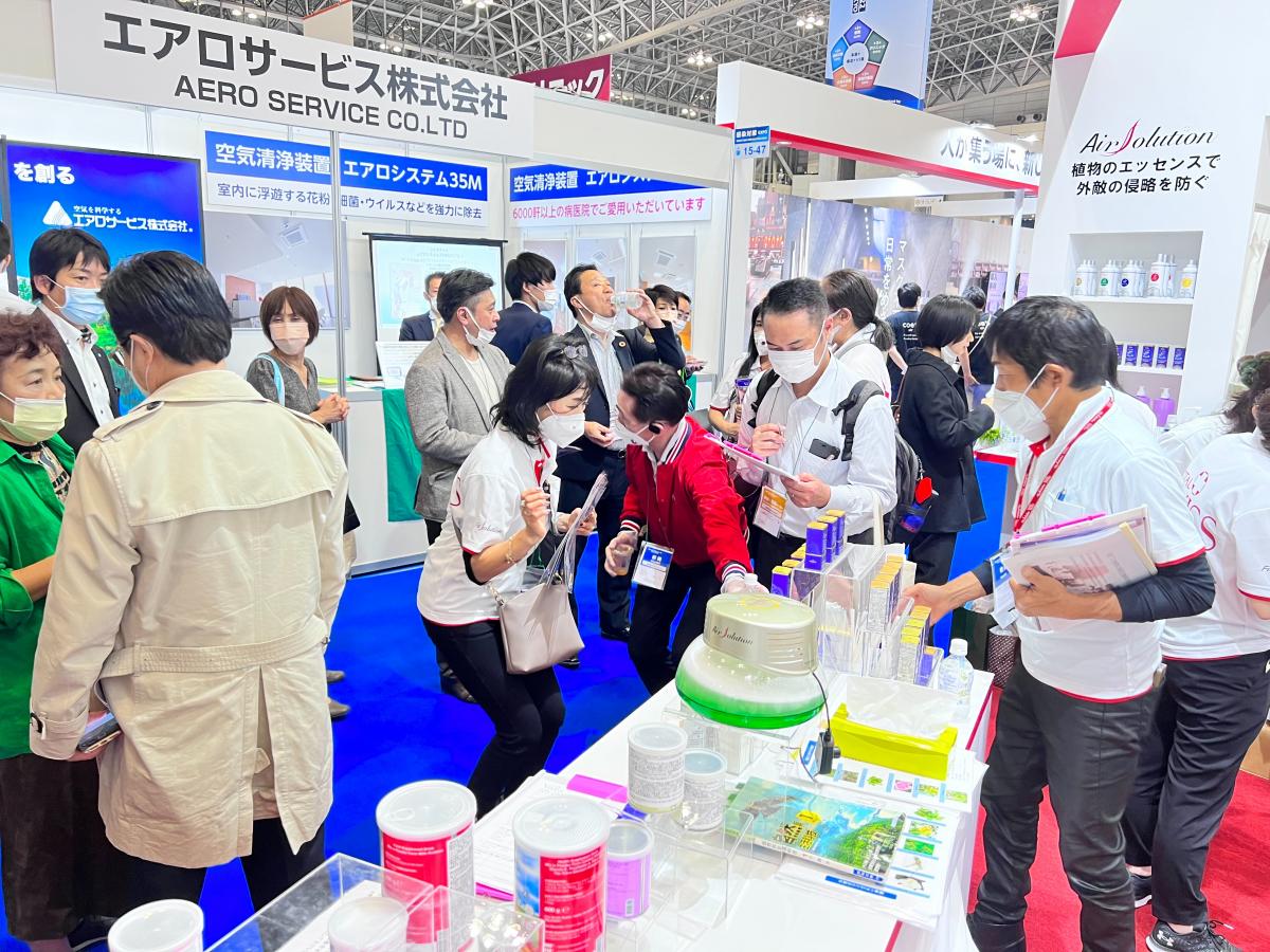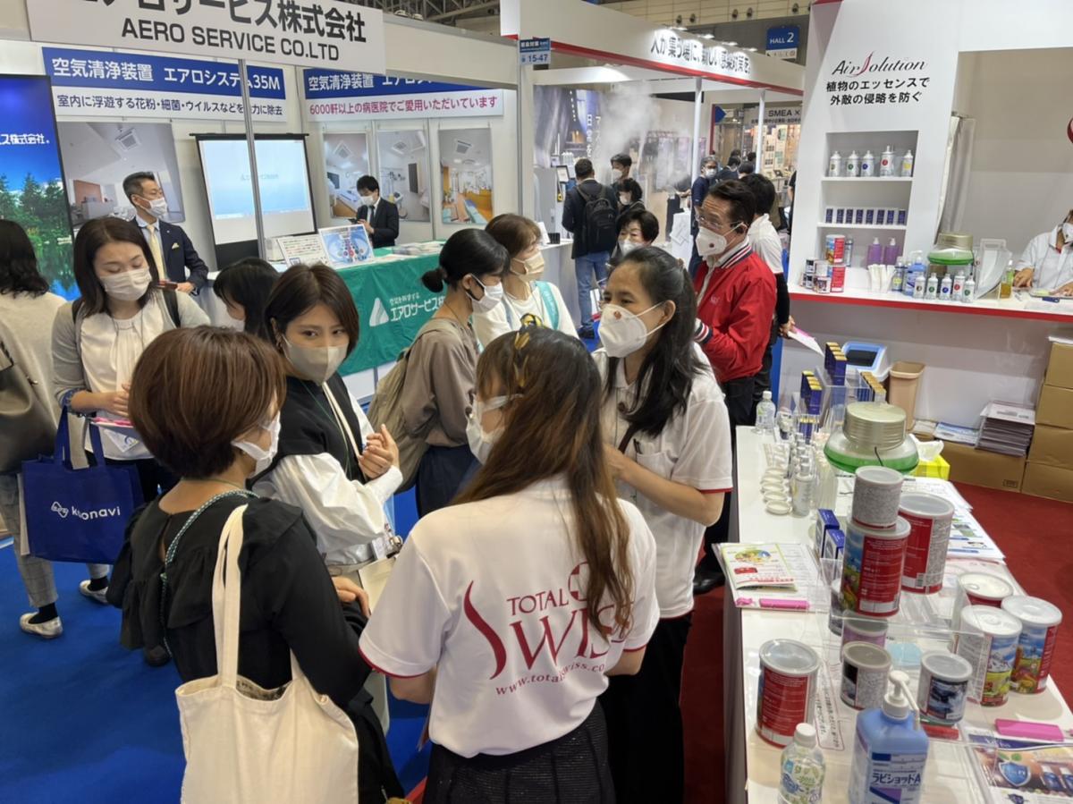 東京第二屆感染對策展覽會第二天一早,日本公司AGM美雪一大早就在日本群組發出好消息:「東京第二屆「感染對策展覽會」第二天,今天有個好的開始,一早就有很多人來到Total Swiss展位跟大家打成一片。」