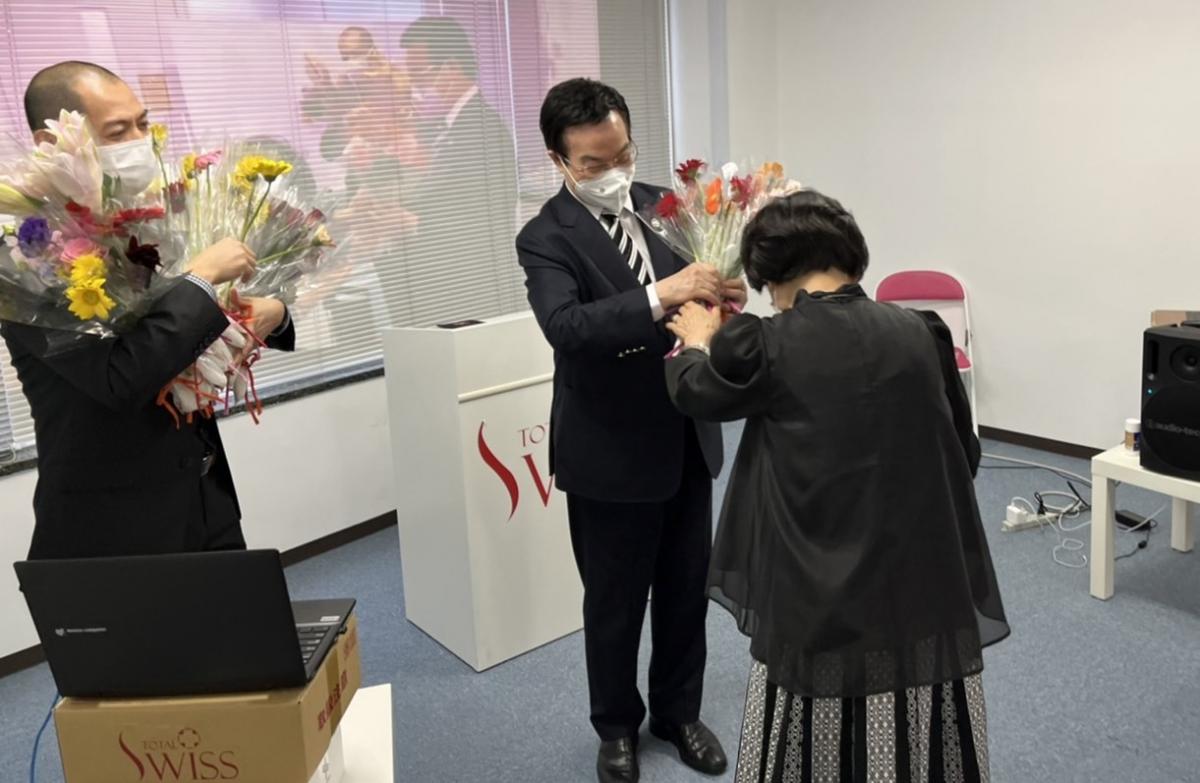 為了向王博士永不低頭贏得司法正義的堅定意志表達支持與敬意,講座前,日本夥伴一個接一個魚貫上前向王博士獻花,還有日本夥伴特別宣讀文情並茂、充滿真情的心聲,每一個夥伴的那一朵花,每一個字句,在在說明,王博士六年來的堅持與奮鬥,對於日本市場與日本夥伴,也同樣有著深遠的意義。