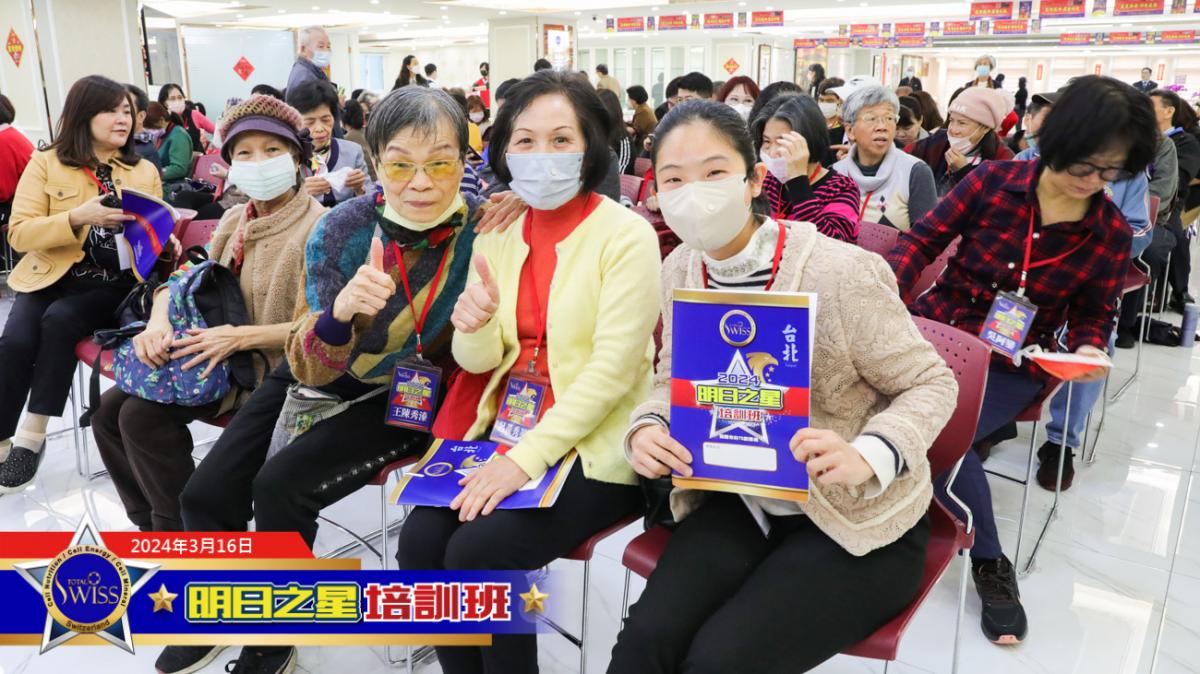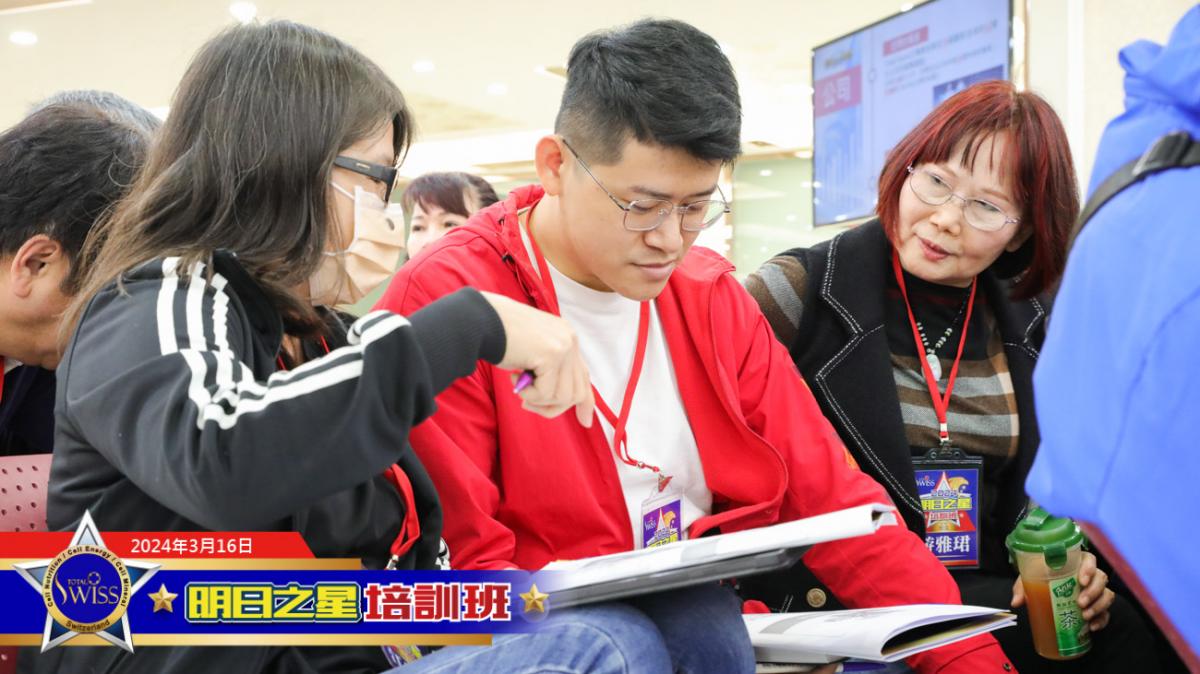 16日的明日之星課程仍舊由Johnny老師挑起大樑,用五堂完整的課程,從帶動學員的成功企圖、認識Total Swiss黃金三角的核心優勢,再進入會場運作,最後用理論與實作啓動學員們的事業行動力與戰鬥力。