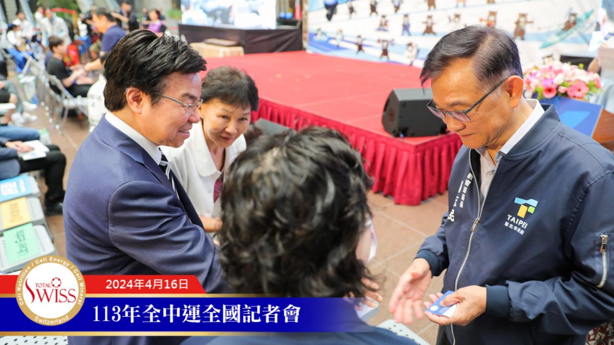 2024年4月16日上午10點30分,王博士受邀出席113全中運記者會。在記者會正式開始前,台北市教育局長湯志民特別上前與王博士握手寒暄,先行向王博士致意。