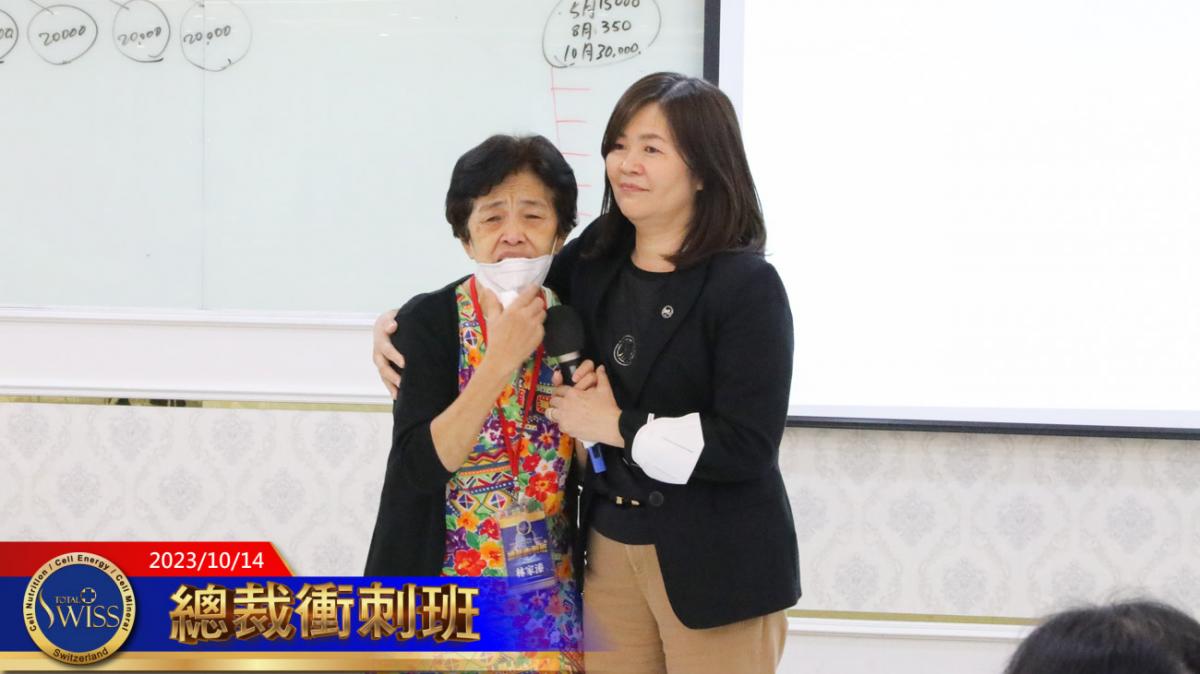 在最後,Parker經理邀請學員上台分享心得,準總裁吳清江第一個上台,她說;今天衝刺班回訓,我已經下定決心了。我以前坐過13次救護車,我的命是Total