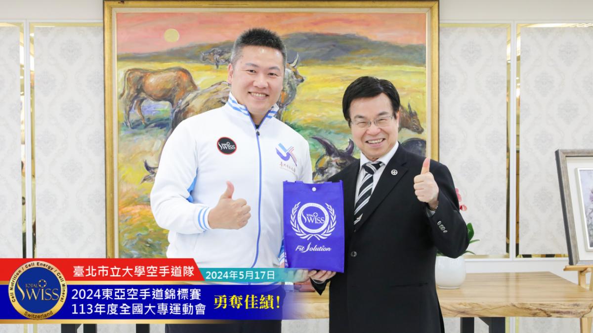等東亞盃隊員凱旋歸來後,全大運及東亞盃的奪牌選手,由北市大技擊系謝富秀教授、寧玉麟教練以及傑出學長吳峻維教練帶隊,於5月17日下午前來Total Swiss拜會王博士,並在分享比賽獎牌與榮耀的同時,向王博士表達出滿滿的謝意。