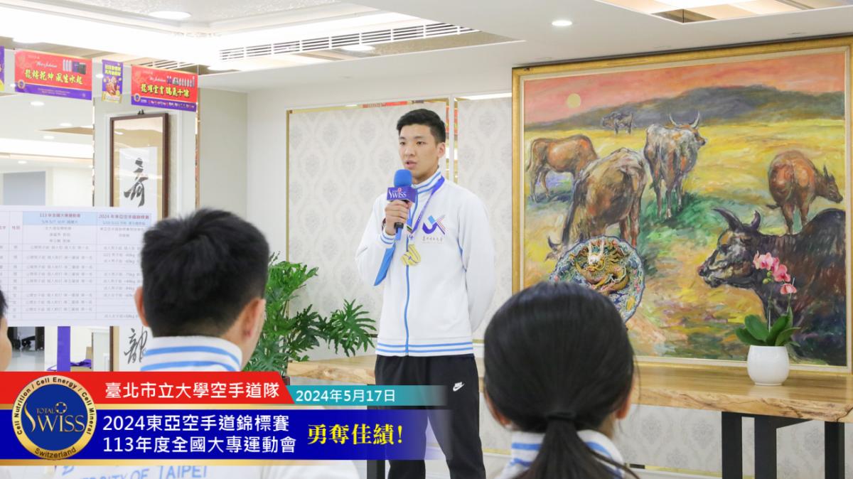 113年全國大專運動會於5月4日至7日在臺中市舉行,台北市立大學空手道隊在空手道14項賽事中,一共拿下了8面金牌、6面銀牌、1面銅牌,戰績斐然。還沒來得及喘一口氣之際,徐立緯、鍾雅淇等選手旋又整裝飛往中國大陸河南省,於10日至11日參加2024年東亞空手道錦標賽,並在奔波勞頓的狀態下,透過完全營養的調整,繼續用出色的體能發揮無敵的戰力,一舉拿下了三金、二銀、三銅耀眼戰績。其中,男子60KG組的徐立緯更是一個人囊括了成人組、U21組兩項賽事的金牌。