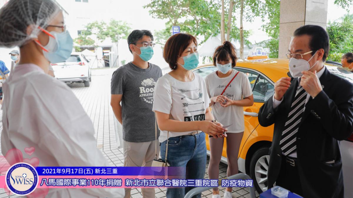 捐贈快要結束的時候,三重忽然下起了一陣大雨,蔡秘書特別藉著這一陣雨,祝福八馬公司大發,用以表達對王博士親臨前線關心醫護同仁的行動。