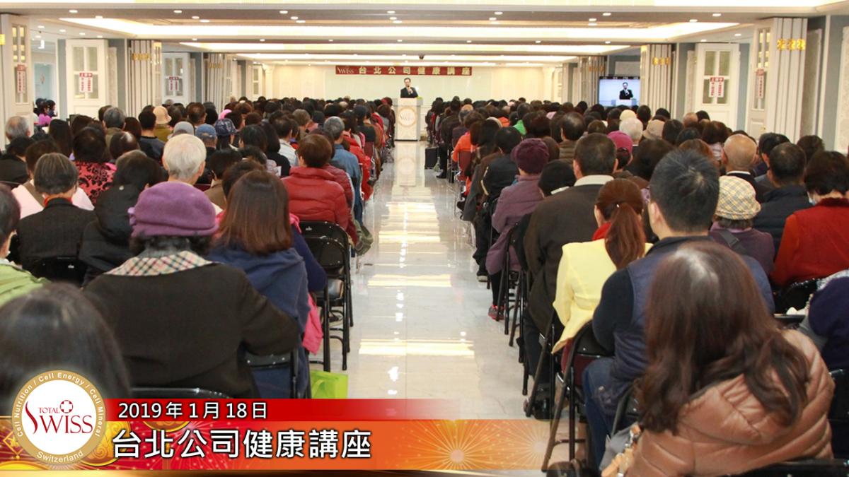 繼1月15、16兩日在屏東東港、雲林斗六連續兩場令人深受啟發的健康講座之後,Total Swiss創辦人王文欽博士於18日下午1時,又在台北公司舉辦第三場健康講座,現場共吸引近七百位來自台北新北的夥伴共同參與。