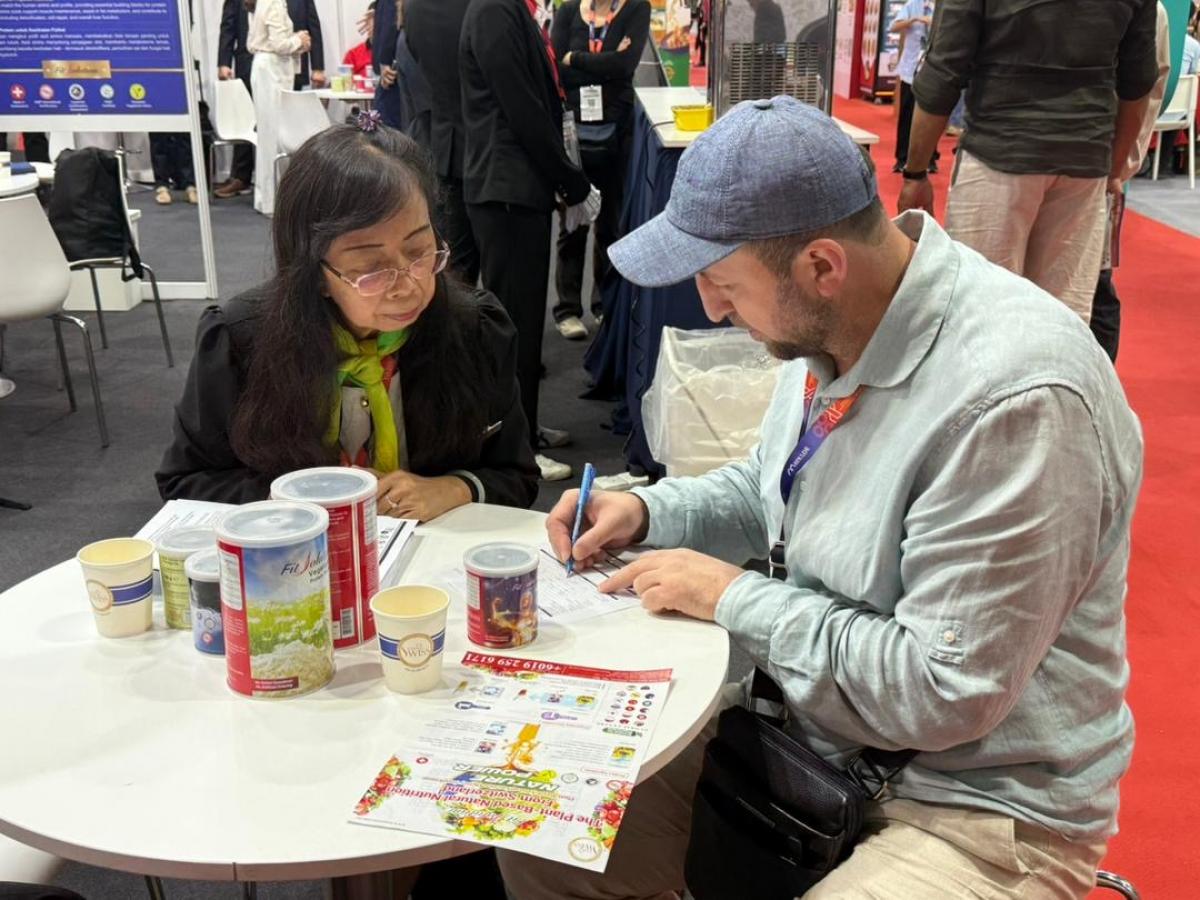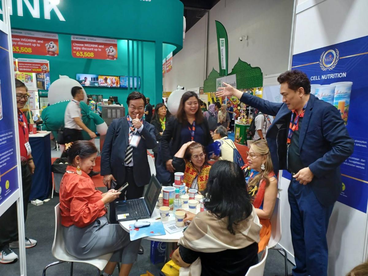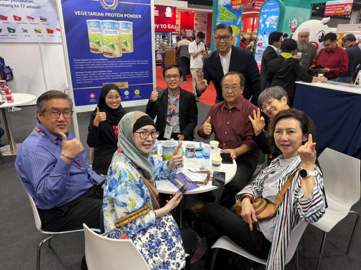 經過了第一天的洗禮與摸索,原本還不善於把握在展場進行分享的新馬印夥伴,好像都同時開了掛一樣,在MIHAS 2025(2025年馬來西亞國際清真展)第二天,一開展就展現了無比的熱情與分享力。當然,也很快地就把Total Swiss展位的人潮帶動起來,面對幾乎加倍的試喝人潮,王博士則一如在每一次展覽那樣,一桌又一桌,細心的接待由現場夥伴引薦的有潛力的參訪人士。