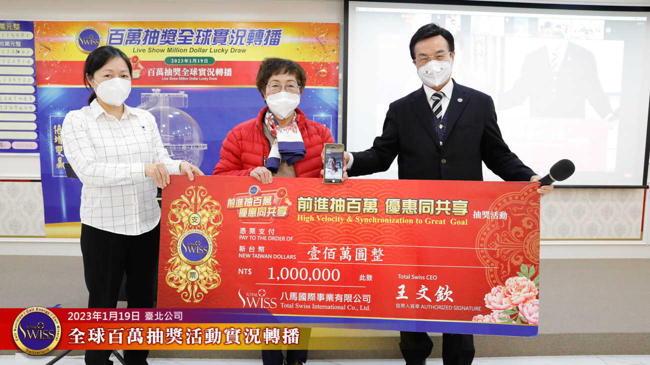 2023年1月19日,Total Swiss百萬大抽獎邁入第二個年度。上一個年度,這項全球夥伴透過現場實況聚在一起的百萬抽獎活動,為夥伴們創造了以一帶五的成效,也為全球夥伴在疫情中創造了寶貴的凝聚力。