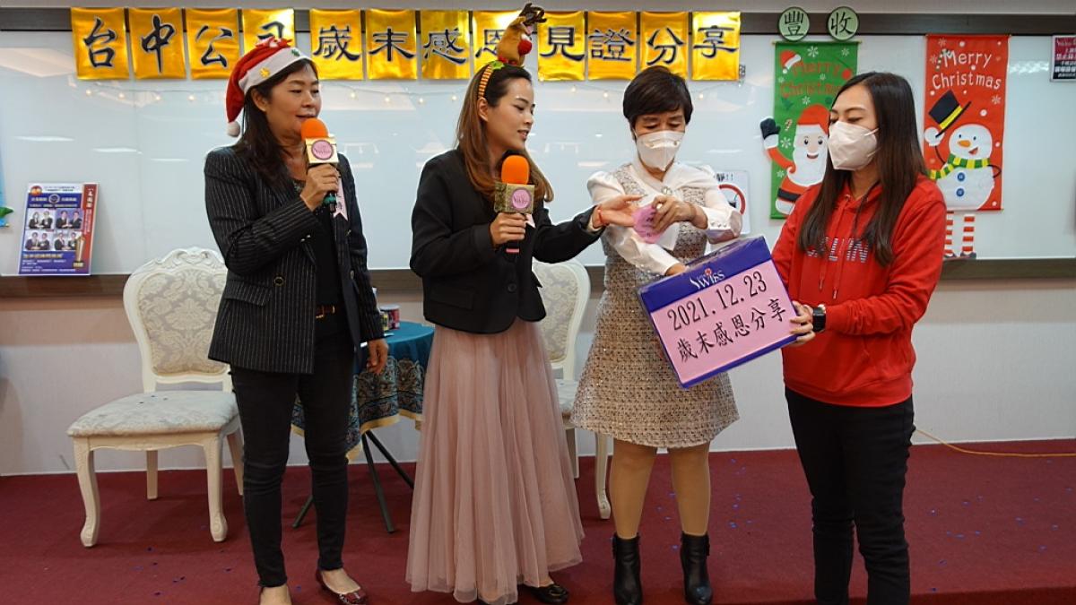 12月22日,Total Swiss在台北公司召開2021年台灣區總裁暨主管會議;緊接著, 12月23日下午,Total Swiss台中公司再舉辦了一場歲末感恩見證分享會。三百多位與會的夥伴,把台中公司24樓大會議室跟兩個小教室都塞滿了,現場呈現出一股自2020年初疫情爆發以來,已經很久沒有感受到的熱情氣氛。