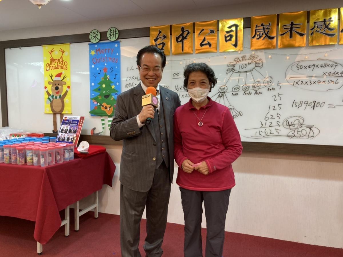 12月22日的台灣區總裁暨主管會議,是一次高階領導人與行政幹部的會議,士氣高昂是理所當然的。而12月23日在台中的這一場分享會,則是一場基層的活動。熱絡的表現,代表著在疫情中, Total Swiss的能量並沒有散去,透過386計畫的深耕,獨有的產品力、文化力、認同力、軟實力又更進一步接上了地氣。