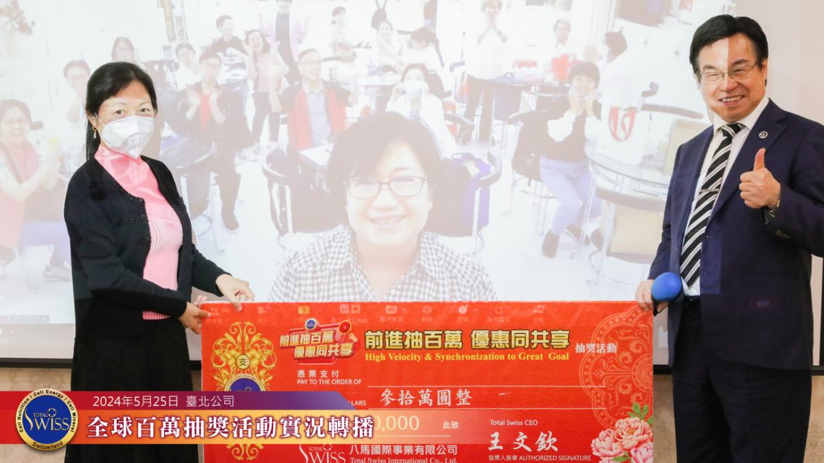 第28回Total Swiss全球百萬抽獎好運特別眷顧台灣夥伴,抱走了兩個100萬元金獎及4個銀獎等6個獎項。不過,第29回全球百萬抽獎則出現了另外一種的戲劇性結果,10個銀獎跟1個金獎,只送出了2個,共有8個銀獎及1個金獎因為空號結果被累積到下個月。