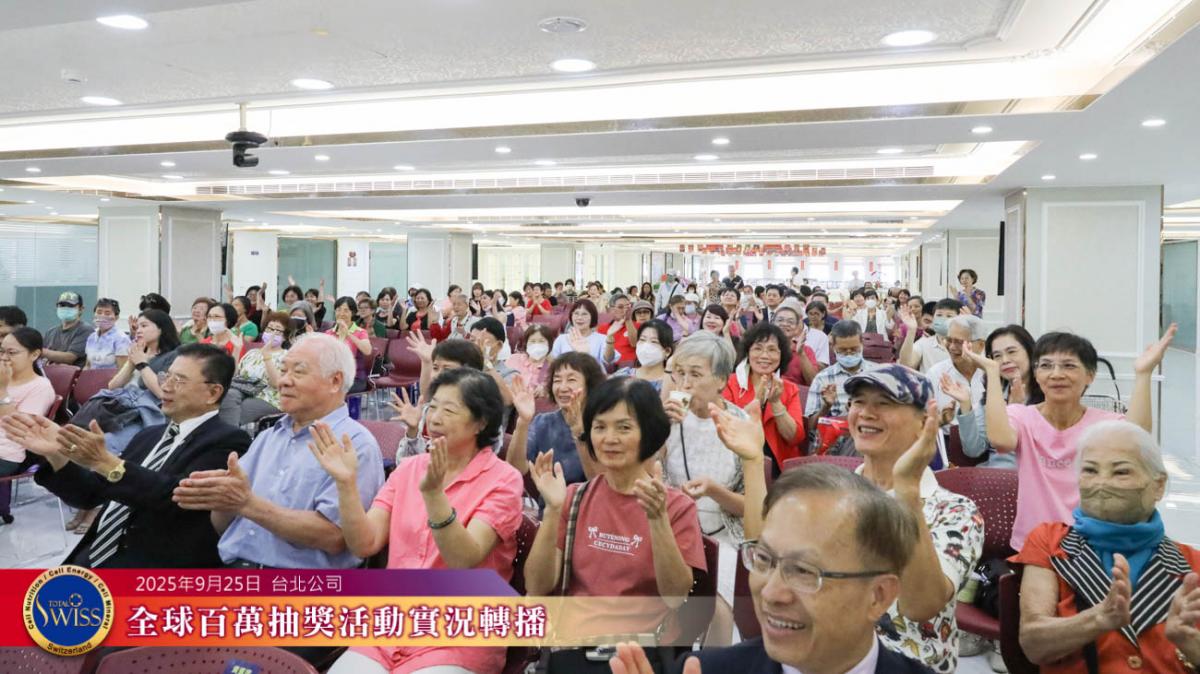 9月26、27日,王博士與全球領導人將陸續由各地啟程飛往美國,參加Total Swiss美國市場Grand Opening活動,第45回全球百萬抽獎因此提前到周四(9月25日)下午舉行,由於第44回抽獎台北現場好運連環爆,連續有夥伴中了兩個一百萬與一個三十萬。因此,第45回抽獎時,有許多中南部夥伴專程趕來台北參加,想要沾一沾台北現場的運氣,看看能不能在台北抱走百萬大獎。