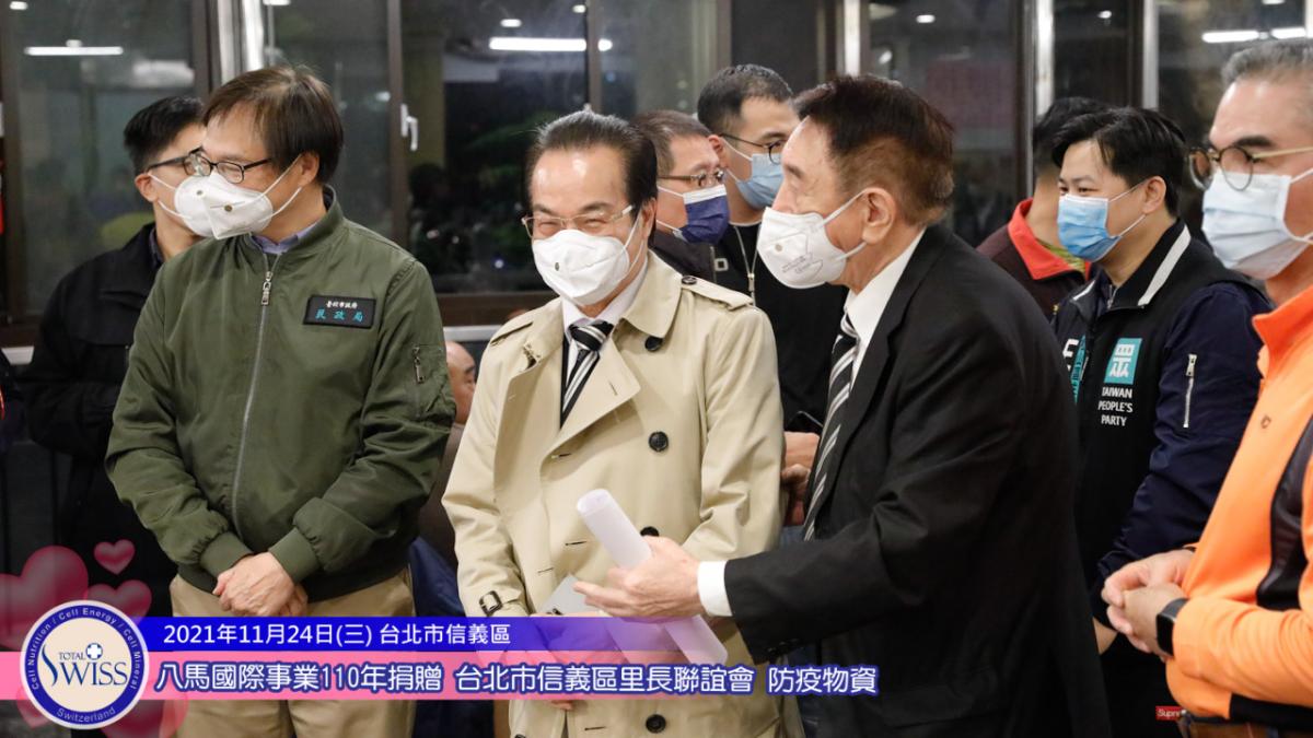 11月24日,捐贈的腳步再次回到台北,在台北市信義區象山腳下的慈惠堂松園餐廳舉行「台北市信義區里長聯誼會防疫精油套組捐贈儀式」。