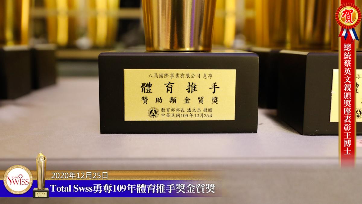 為了向默默奉獻的幕後企業表達感謝之意,教育部體育署自98年起,已連續12年舉辦「體育推手獎」表揚活動。而Total Swiss已經連續第五年獲得頒獎表揚,並且也是連續第三年獲得推手獎最高榮耀的金質獎獎項。