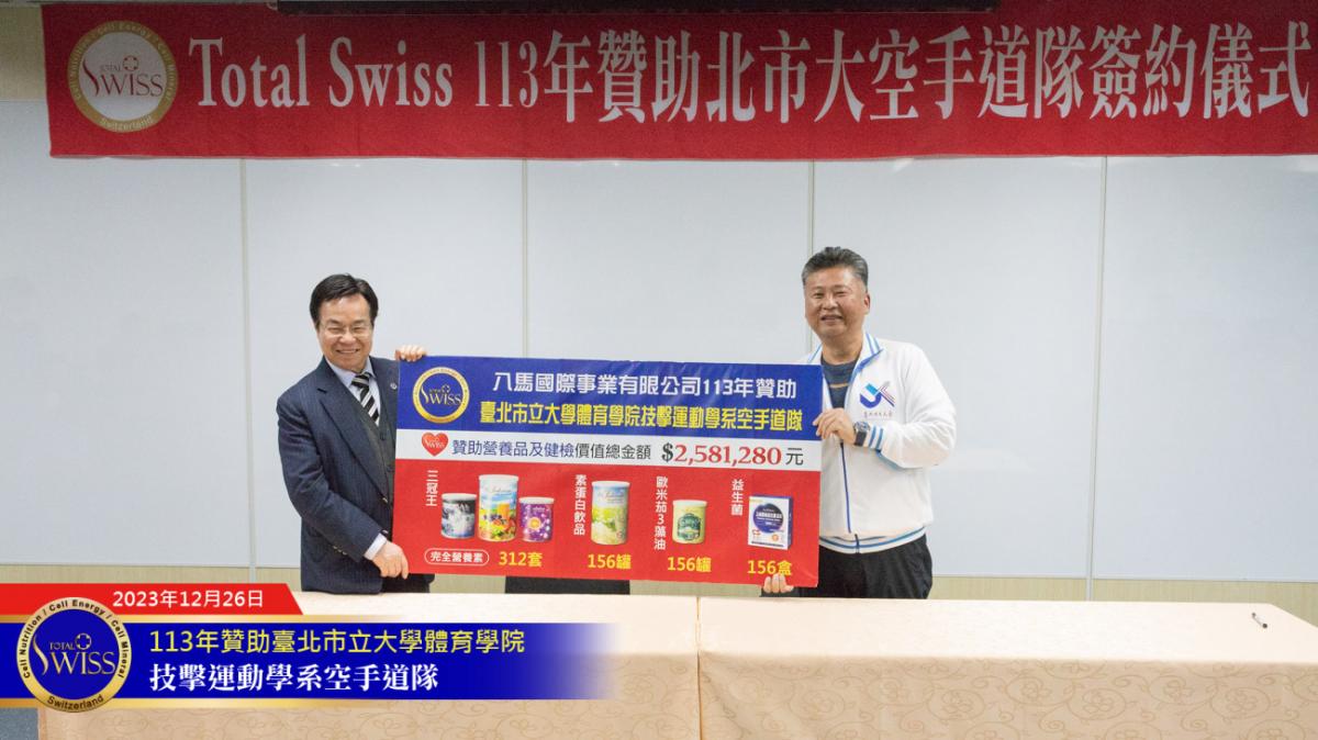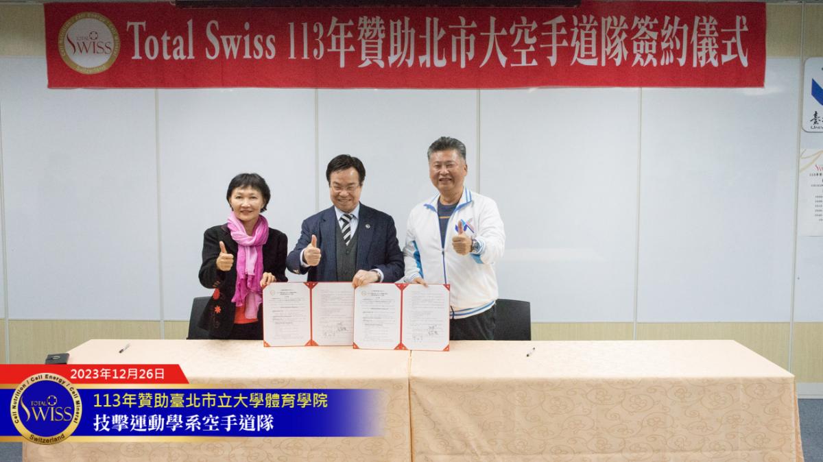 2023年12月26日下午,Total Swiss贊助臺北市立大學空手道隊簽約儀式在臺北市立大學天母校區技擊系三樓舉行。