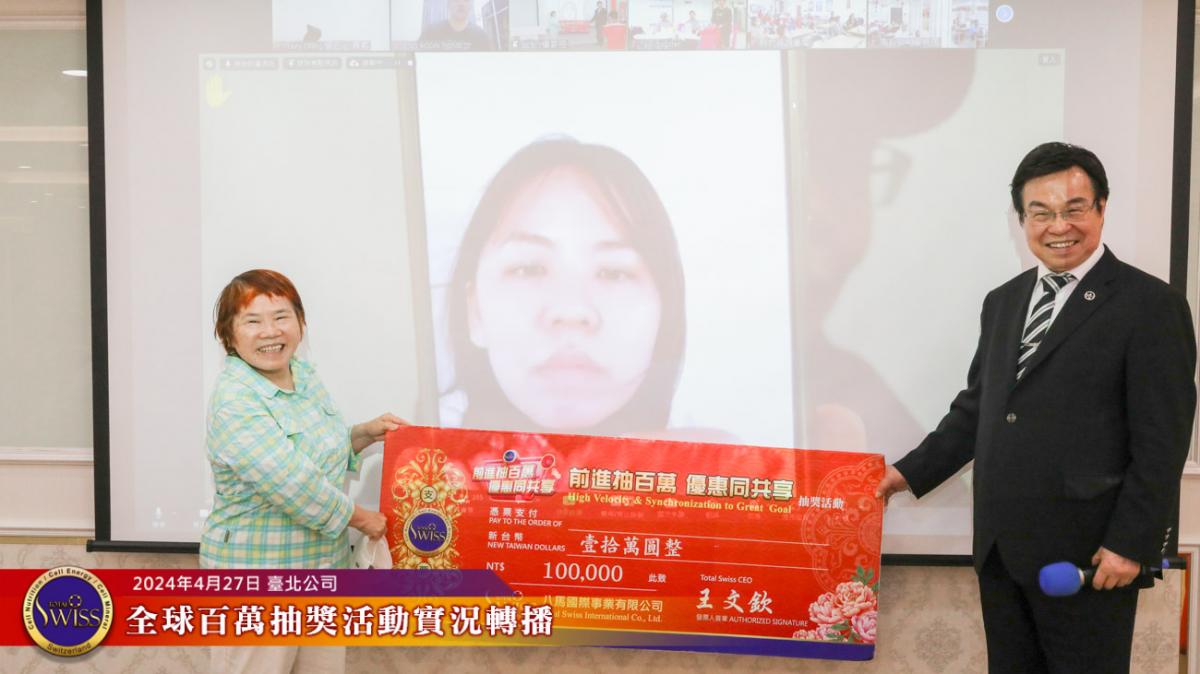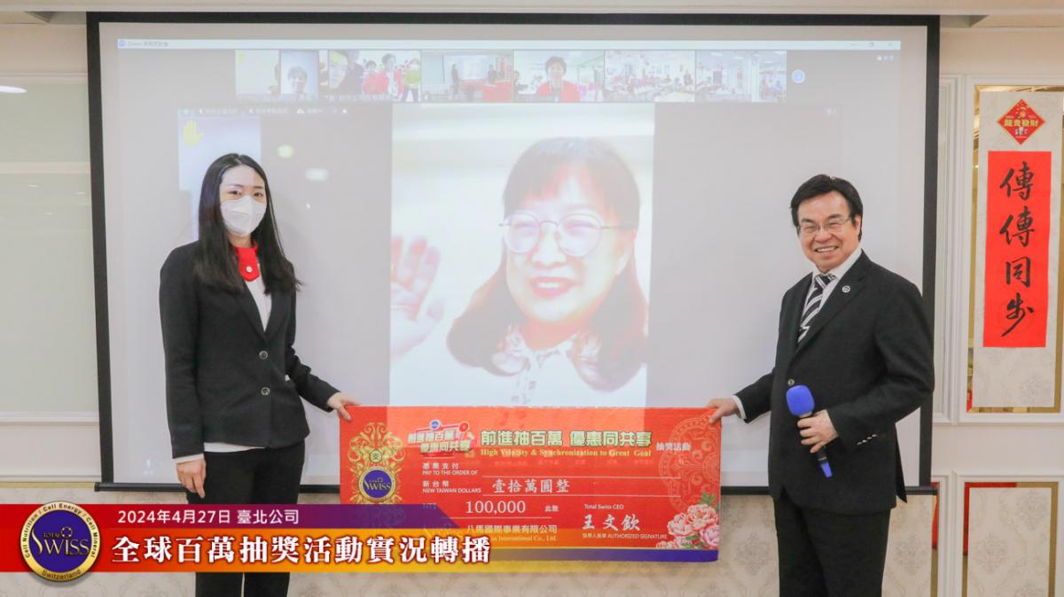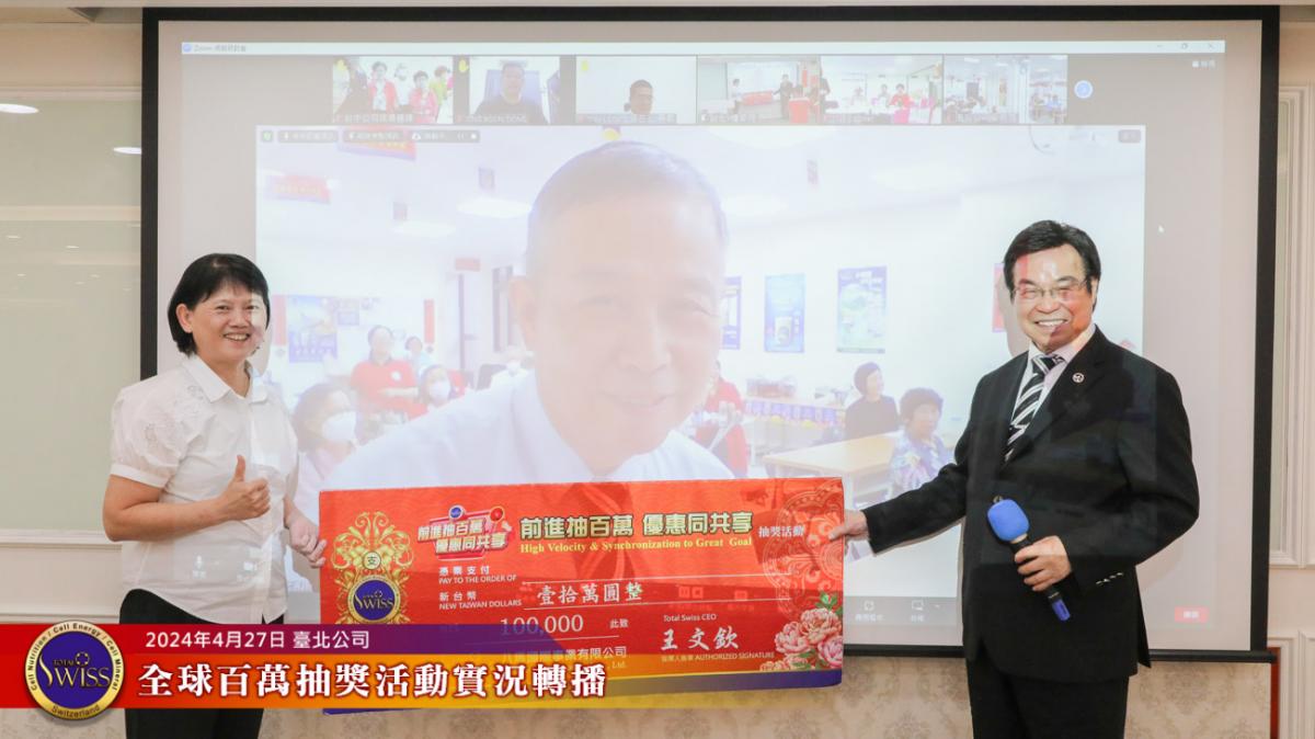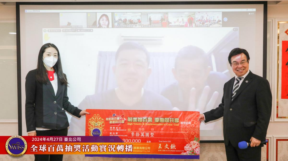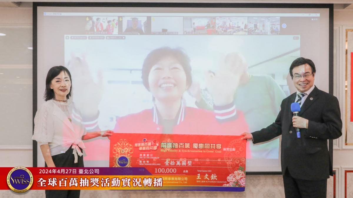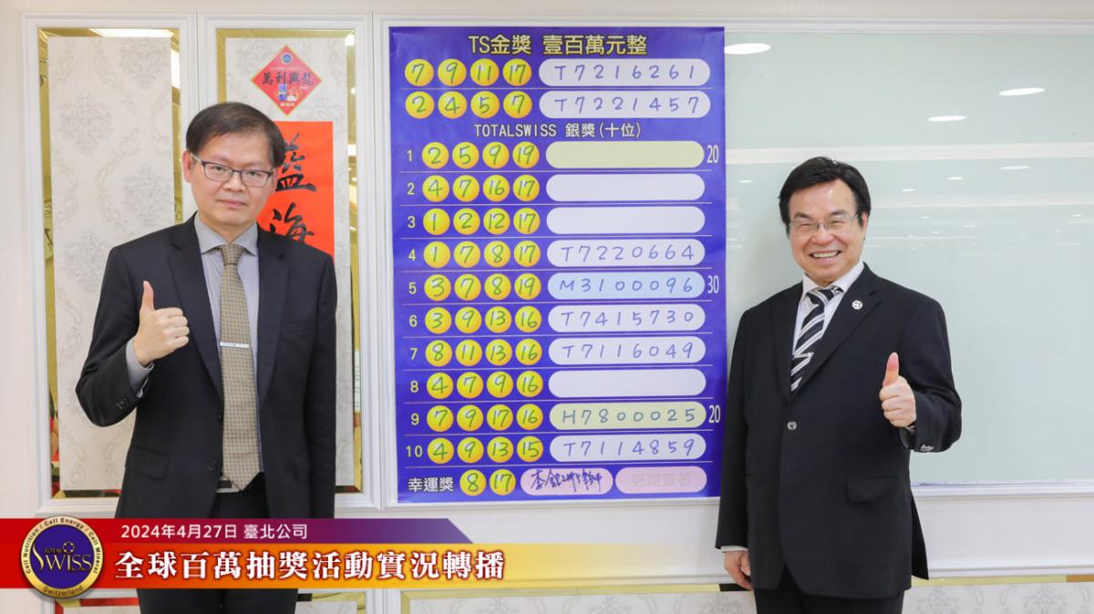 Total Swiss第28回全球百萬抽獎於2024年4月27日下午一點鐘,在台北公司七樓舉行,抽獎實況並透過視訊向全球同步轉播。