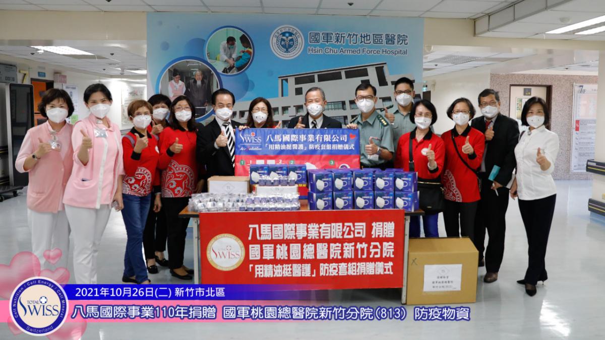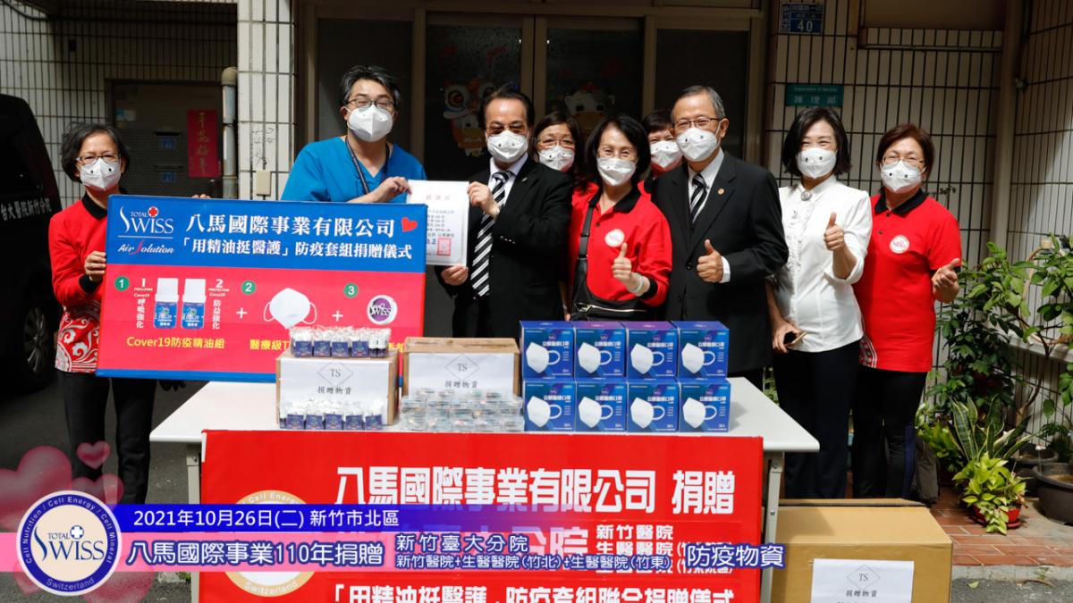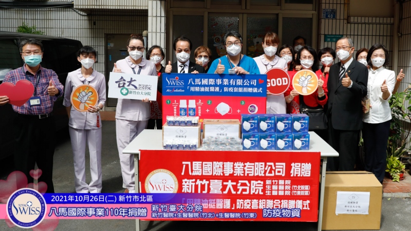 10月26日,八馬國際公司用精油挺前線活動走進新竹,一共捐贈台大醫院新竹分院、國軍813醫院、新竹市環保局以及為新竹縣市防疫工作無私奉獻的新竹市宏宗聖堂道學院志工。