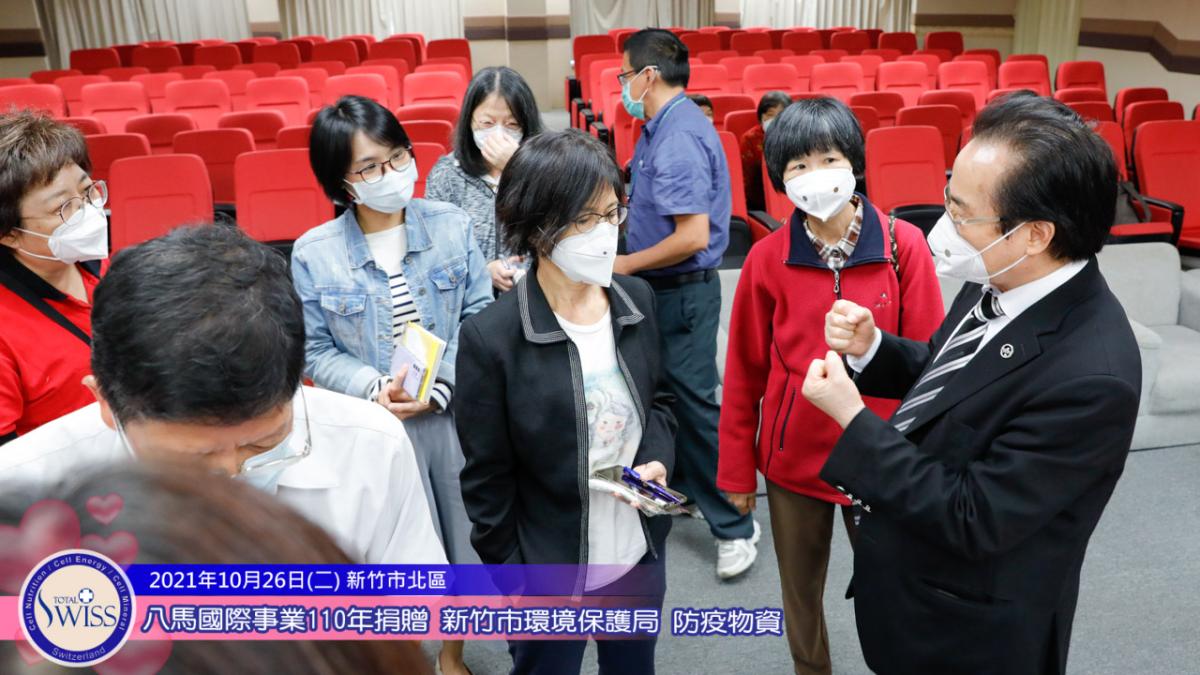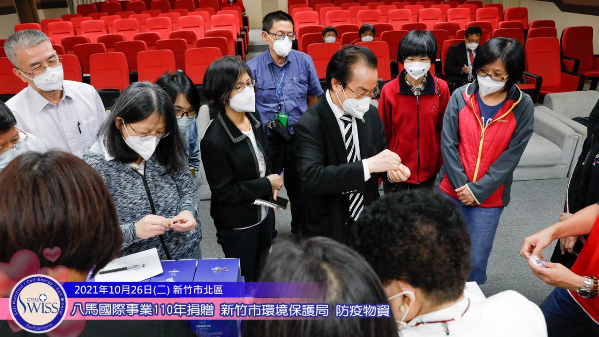 下午三點三十分,10月26日的「第3+1場」捐贈活動,在新竹市政府環境保護局二樓會議室舉行,捐贈對象包括新竹市環保局同仁與長期為新竹市防疫工作默默付出的財團法人宏宗聖堂志工。