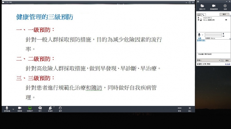 4月20日,Total Swiss視訊會議系統首次上陣,由王博士替AMAC健康管理師第二梯次兩百多位報考夥伴進行考前總複習。