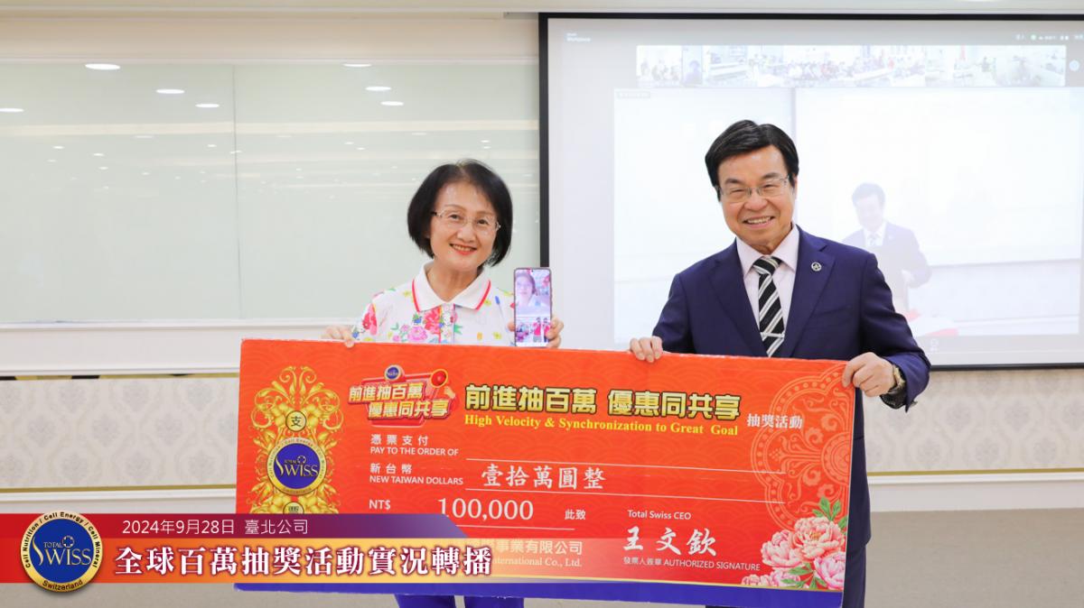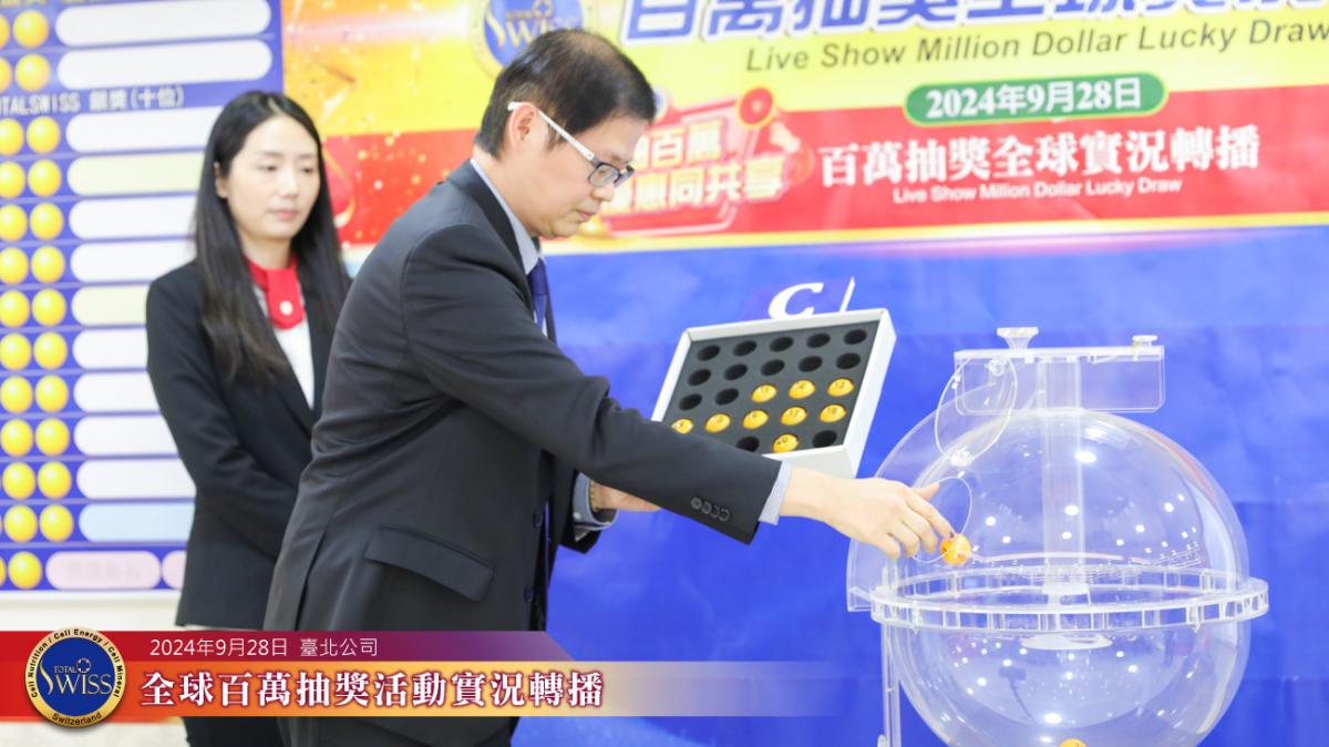 Total Swiss第33回百萬抽獎全球連線活動,於9月28日下午1點30分在台北公司7樓熱鬧舉行。